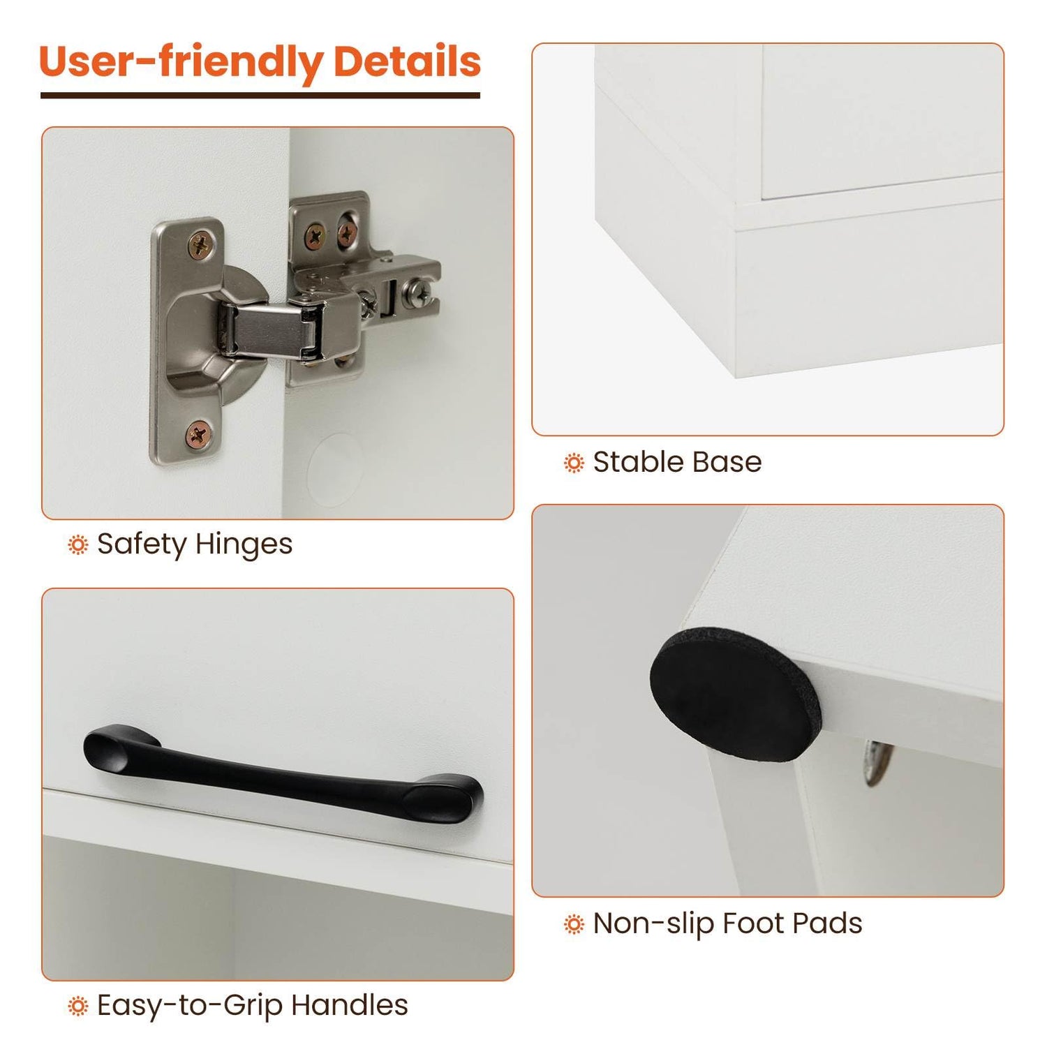 - Reliable & Sturdy Construction: The solid base keeps this cupboard stable and not easy to wobble. Non-slip foot pads bring added sturdiness and protect the floor from being scratched. Moreover, the upper & lower anti-toppling devices securely attach the cabinet to the wall for extra stability and security.