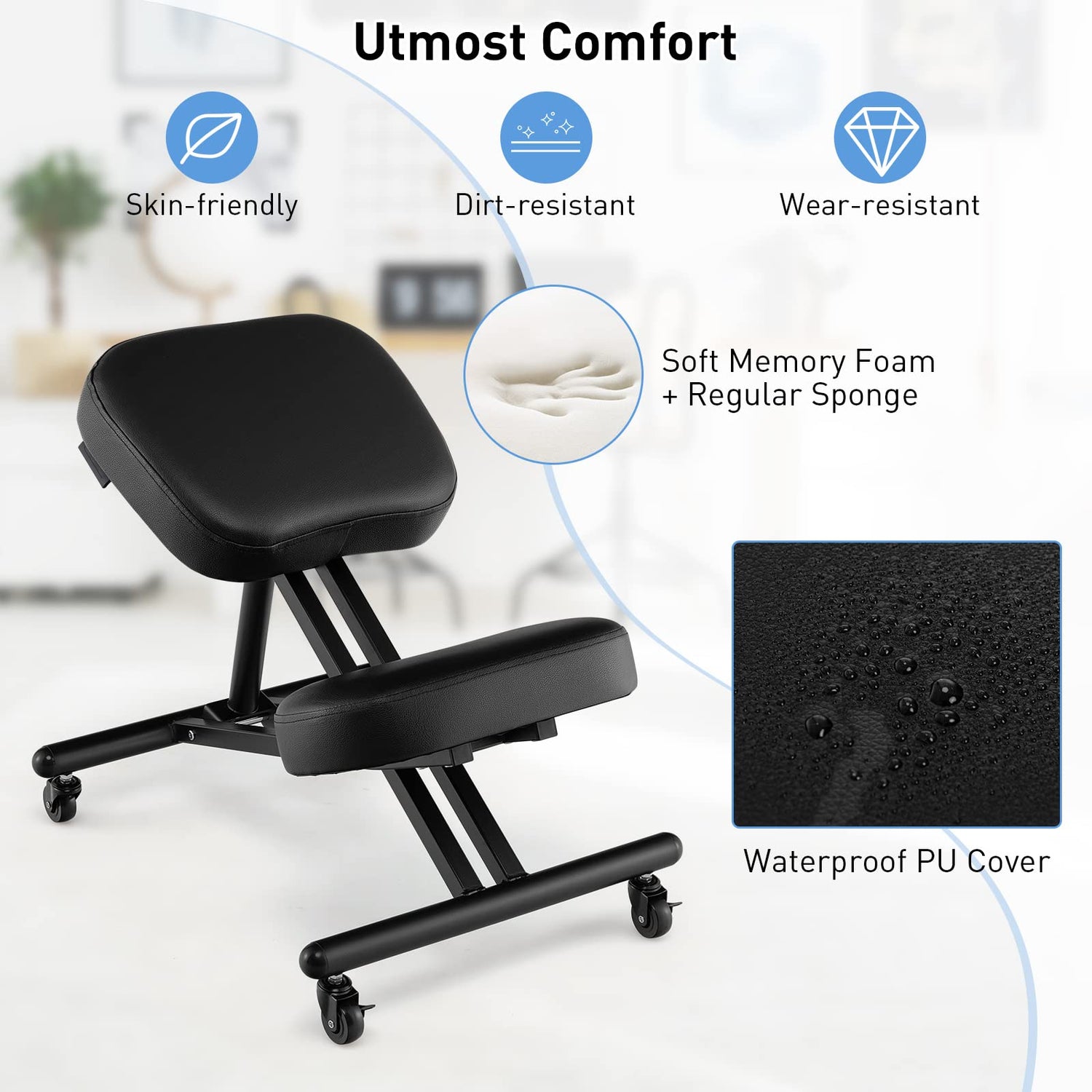 - Comfortable Padded Cushions: Covered with waterproof PU cover, the seat cushion and knee cushion are skin-friendly, dirt-resistant and wear-resistant, ensuring long-lasting service life. Meanwhile, filled with soft memory foam and regular sponge, our cushions offer you a comfortable seating experience.