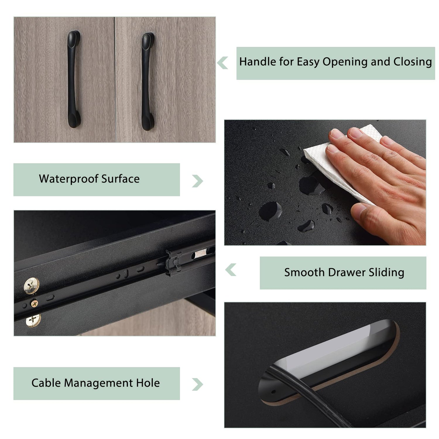 • Wonderful Using Experience: You can orderly manage your microwave, coffee maker and other appliances, running wires through the cable management hole to make a tidy countertop. What’s more, it’s easy to open and close doors with metal handles.