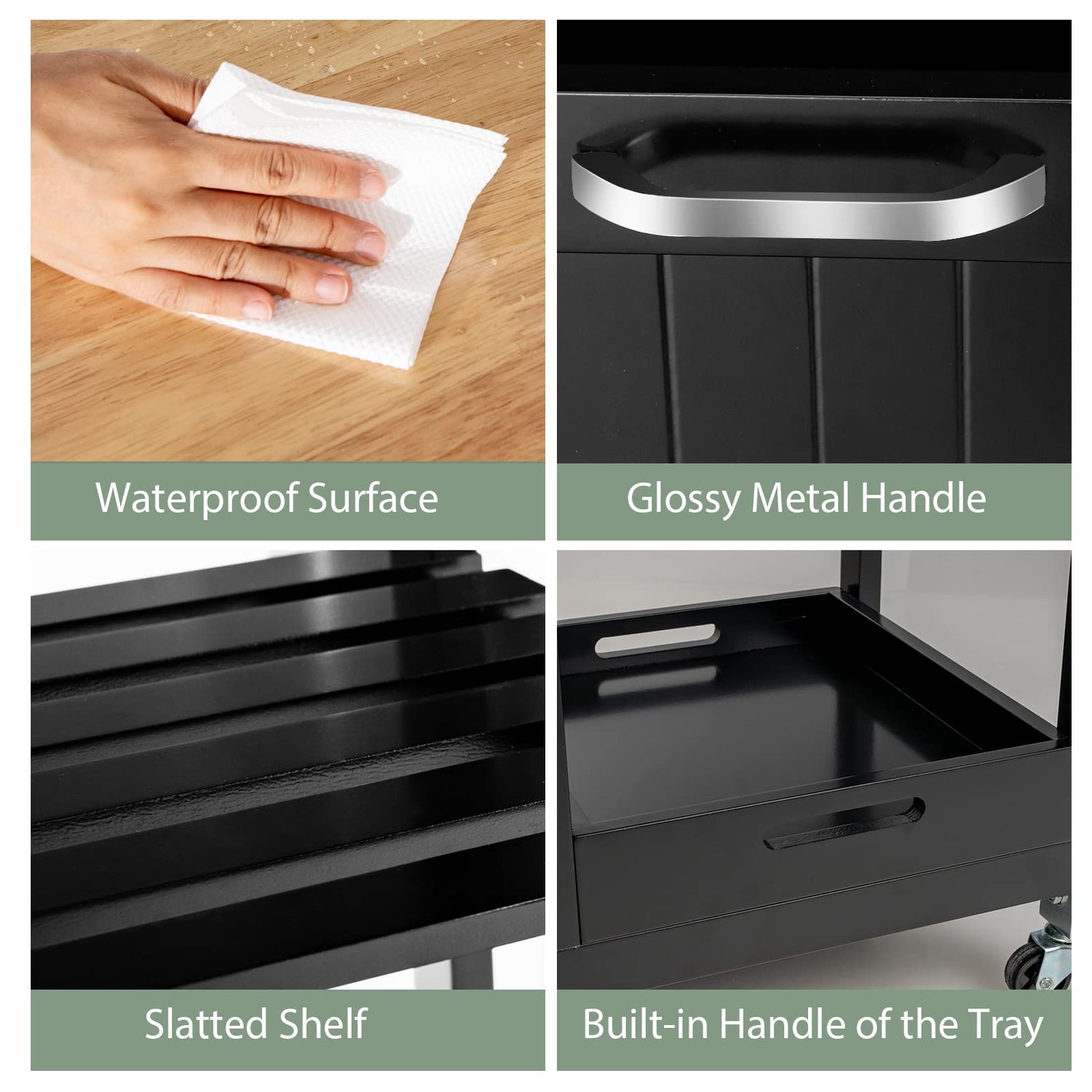 • Solid Structure for Years of Use: The rubber wood countertop and pine wood frame endow the utility storage cart with remarkable sturdiness and stability, providing you with a long service time. The painted surface is smooth and waterproof, which makes daily maintenance much easier.
