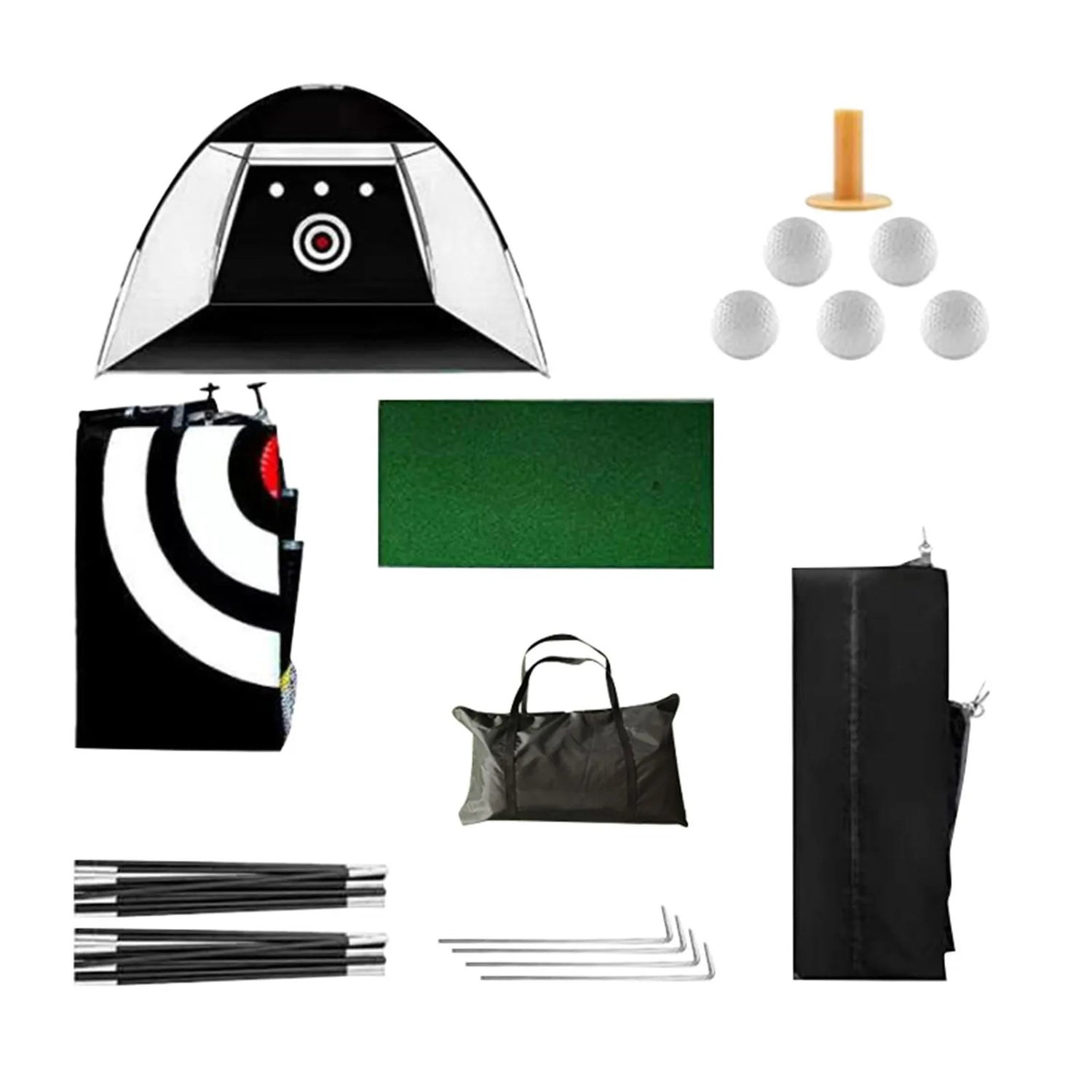 - All-in-one training kit includes golf hitting net, impact target, mat, balls, and carry bag for a complete practice setup