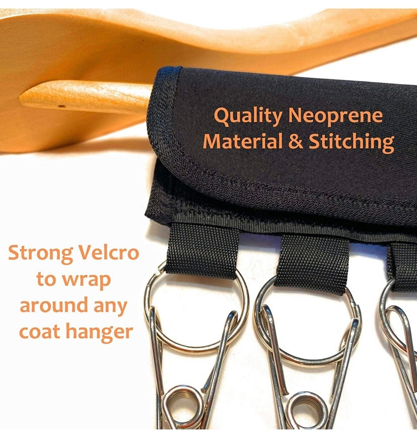 - QUALITY CONSTRUCTION: The closet cap holder is made from quality neoprene material and stainless steel clips. This cap organiser is functional and durable. The velcro hook and loop design, allows the cap hanger to simply wrap around any coat hanger and turn it into a great hat storage solution, to hang in your wardrobe.
