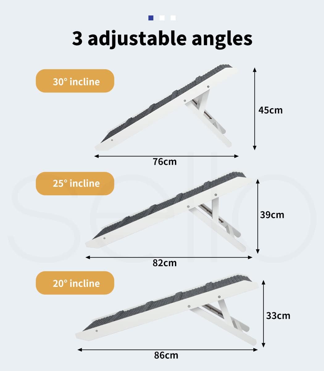 Height Adjustable Dog Ramp Stair for Bed Sofa Couch, 90cm Folding Portable White Pet Ramps, Foldable Car Ramp for Small Large Old Dogs Puppy, Indoor Outdoor Non Slip Dog Ramp 33/39/45cm Height is backordered and will ship as soon as it is back in stock.