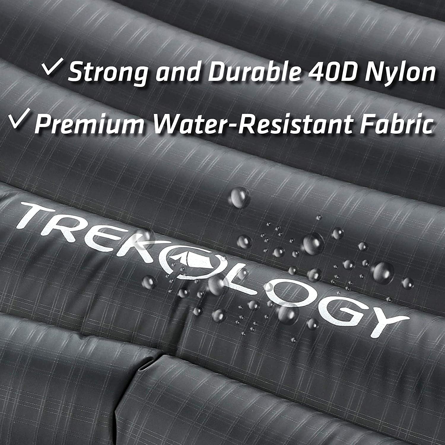 • Brand new design for 2019 - grab yours today! New curvature design that embraces your body to ensure better sleep. Larger valve opening for faster inflation and deflation. Upgraded 40D material making it super light and ultra-durable. Get one and feel the difference in this design today! Pairs well with Trekology ALUFT ultralight camping pillow or any foam pillows.