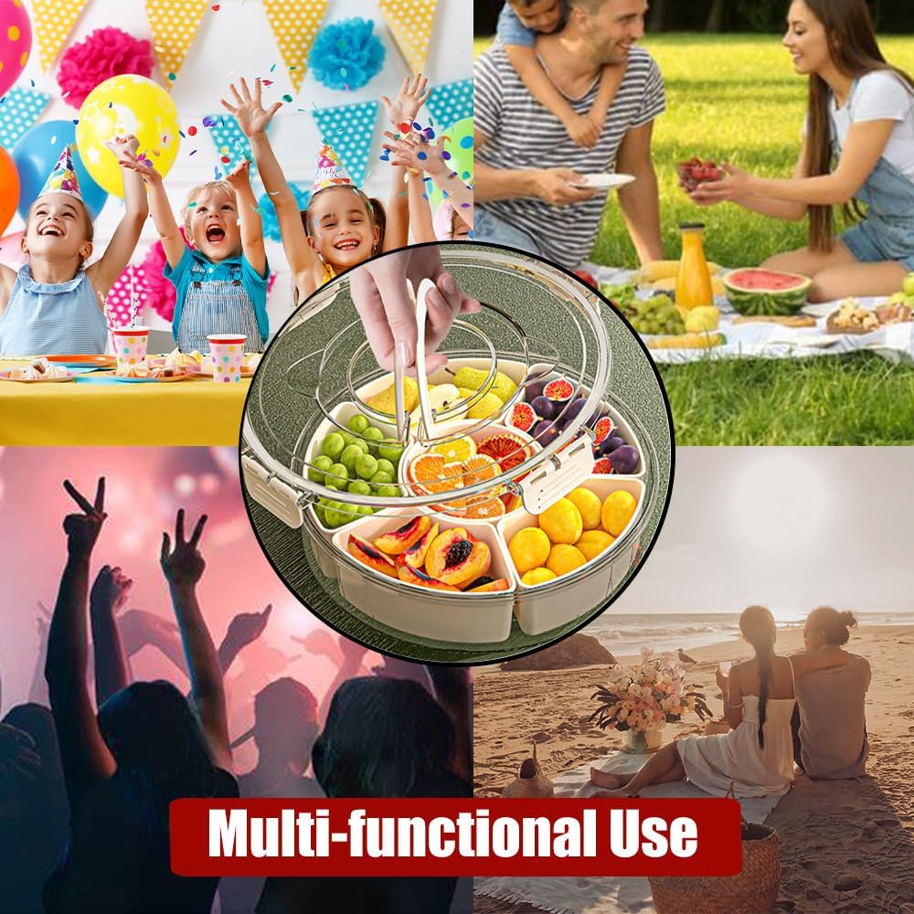 Portable Spinnable Snackle Box Container, Divided Dishes, Trays & Platters,Divided Rotating Serving Tray with Lid and Handle for Veggie, Fruit, Candy, Nuts, Divided Serving Platter