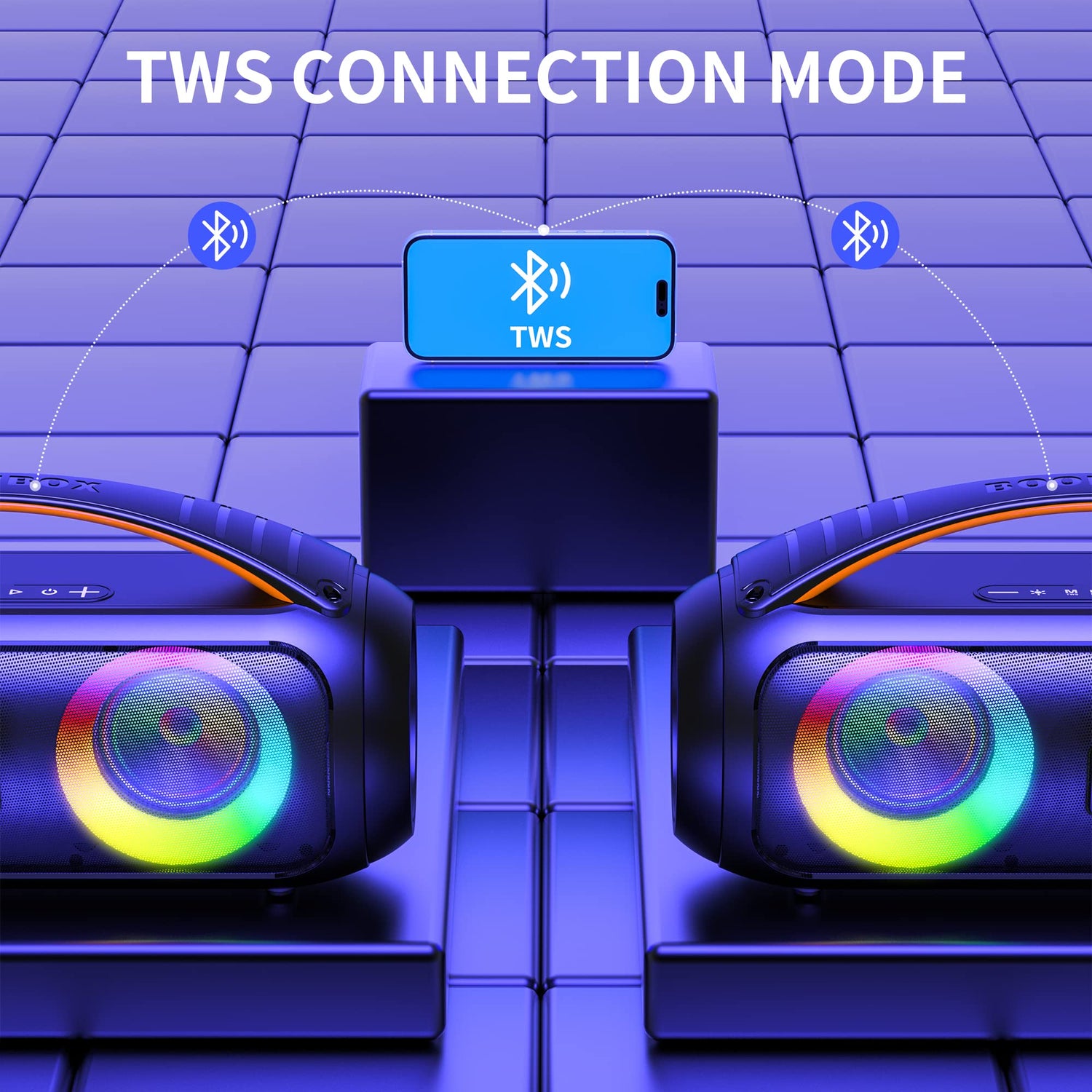 Karaoke Machine with Dual Microphones and Dazzling Lights,IPX5 Waterproof Bluetooth Speaker with Remote Control for Outdoor,Portable Boombox Support AUX/TF Card/TWS