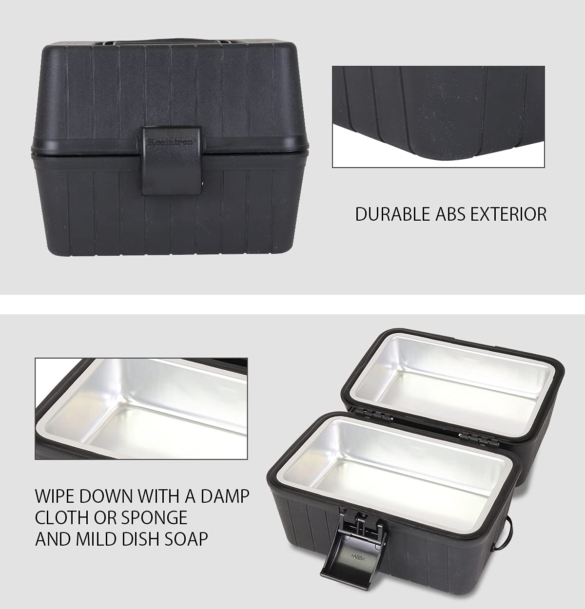 - Durable Construction: The lunch box oven features a durable black ABS exterior, locking clasp, and handle with a food-safe aluminium interior for safe, long-lasting operation