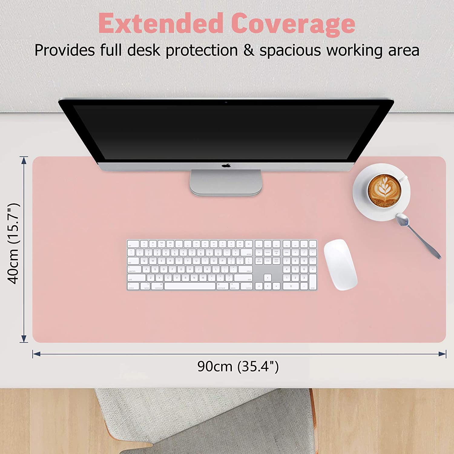 • Extended Size for Optimum Coverage: Size LARGE of 90cm x 40cm (35.4" x 15.75"), this full desk pad mat can fit your desktop or working table perfectly and provide ample movement space. Long enough to accommodate all your computer, laptop, keyboard, notebook, and your coffee mug, of course! The just-right 2mm thickness keeps the mouse mat staying stably on the desk without slipping around