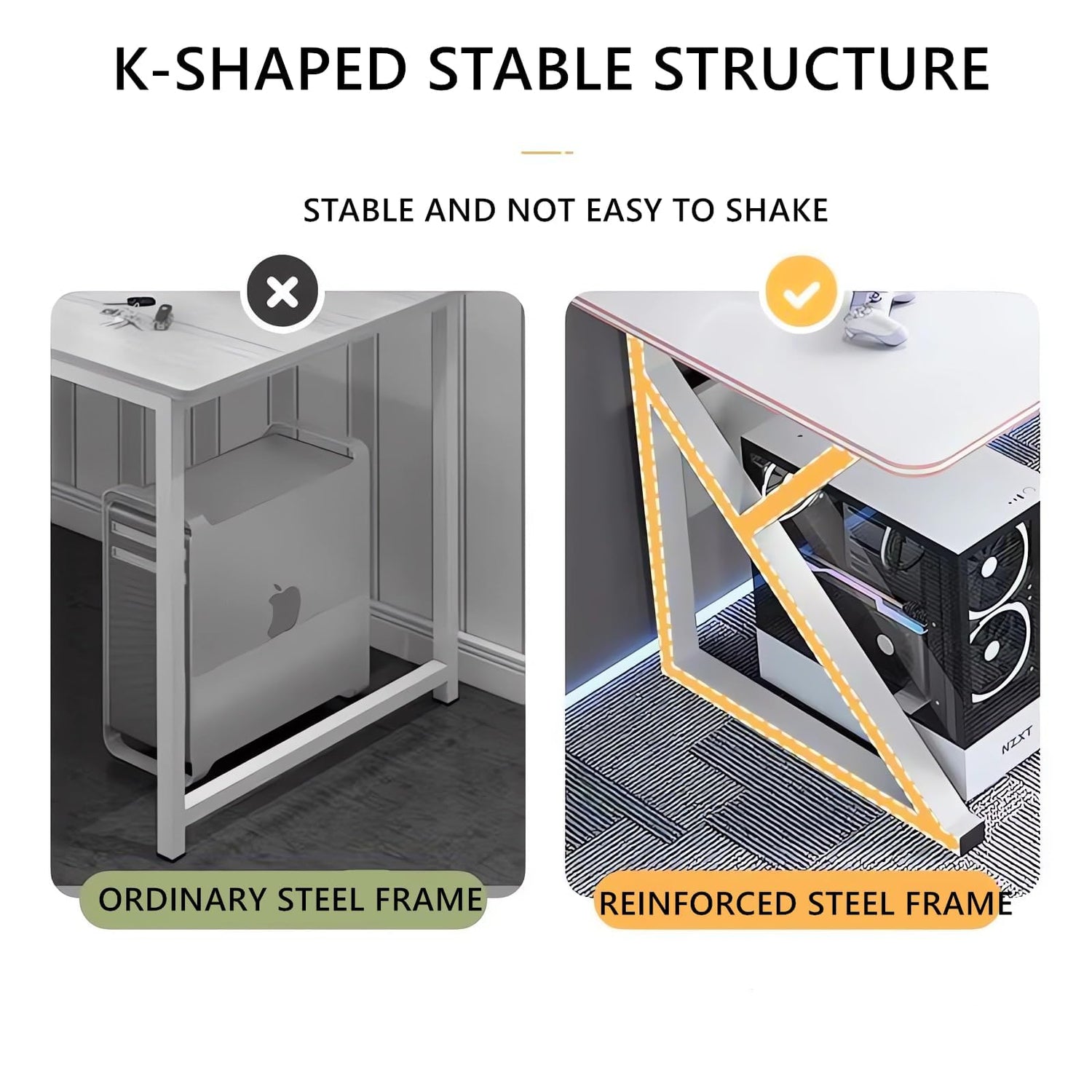 - Strong K-shape: The gaming desk is composed of a steel frame and a 15mm thick maple desktop, which has unparalleled stability and durability. Advanced edge technology and a thicker steel frame ensure that this desk can stand the test of time.