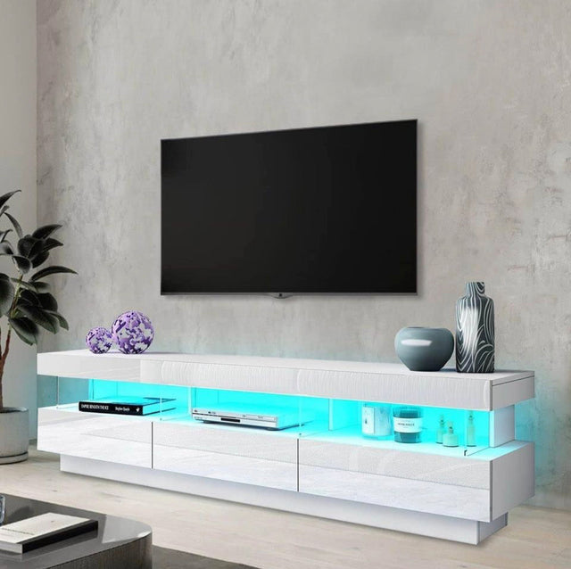 Luxsuite LED TV Stand Cabinet TV Unit Storage Entertainment Console High Gloss Front 3 Drawer