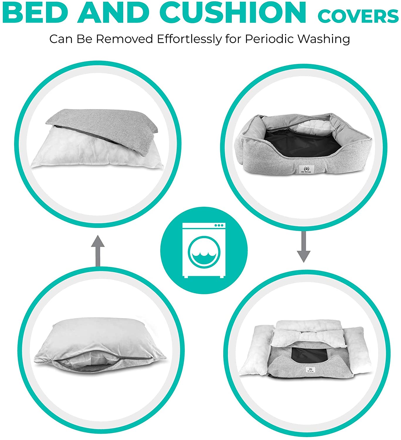 - EASY CLEANING WITH SMART DESIGN: The Bed And Cushion Covers Are Completely Removable With Strong Zips And Are Machine-Washable, Making Cleaning Effortless. With The Hair And Water Resistant Cover, It Is So Easy To Spot Clean And Remove Hair On The Dog Beds;
