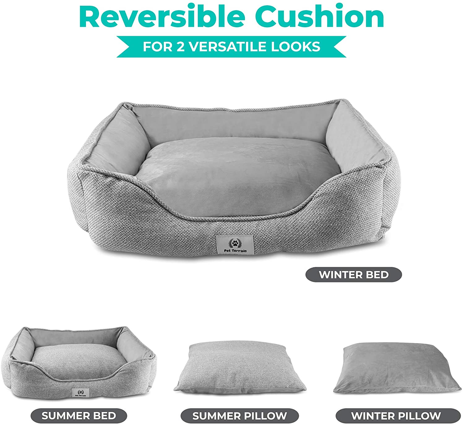 - LUXURIOUS COMFORT: The High-Quality Velvet Lining Sleep Surface Is Super Soft And Gentle, Allowing Your Dog To Have Absolute Comfort While Sleeping Or Resting In The Bed. The Cushion Is Reversible, With One Side Being Warm And Cosy Velvet Surface, Perfect For Colder Months And One Side Being Breathable Fabric, Perfect For Warmer Months. It Also Works Great As A Cat Bed, Or A Bed For All Pets;
