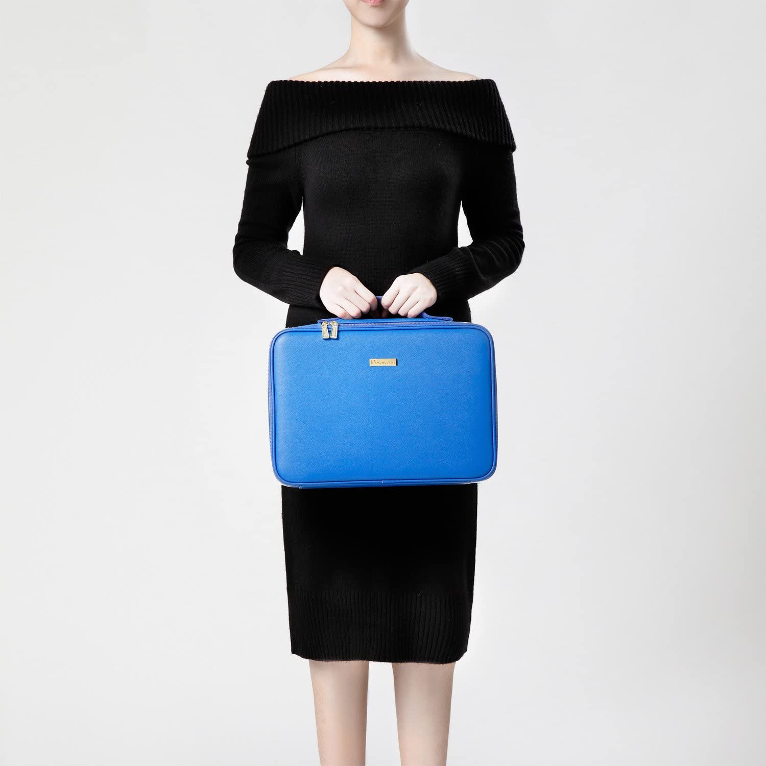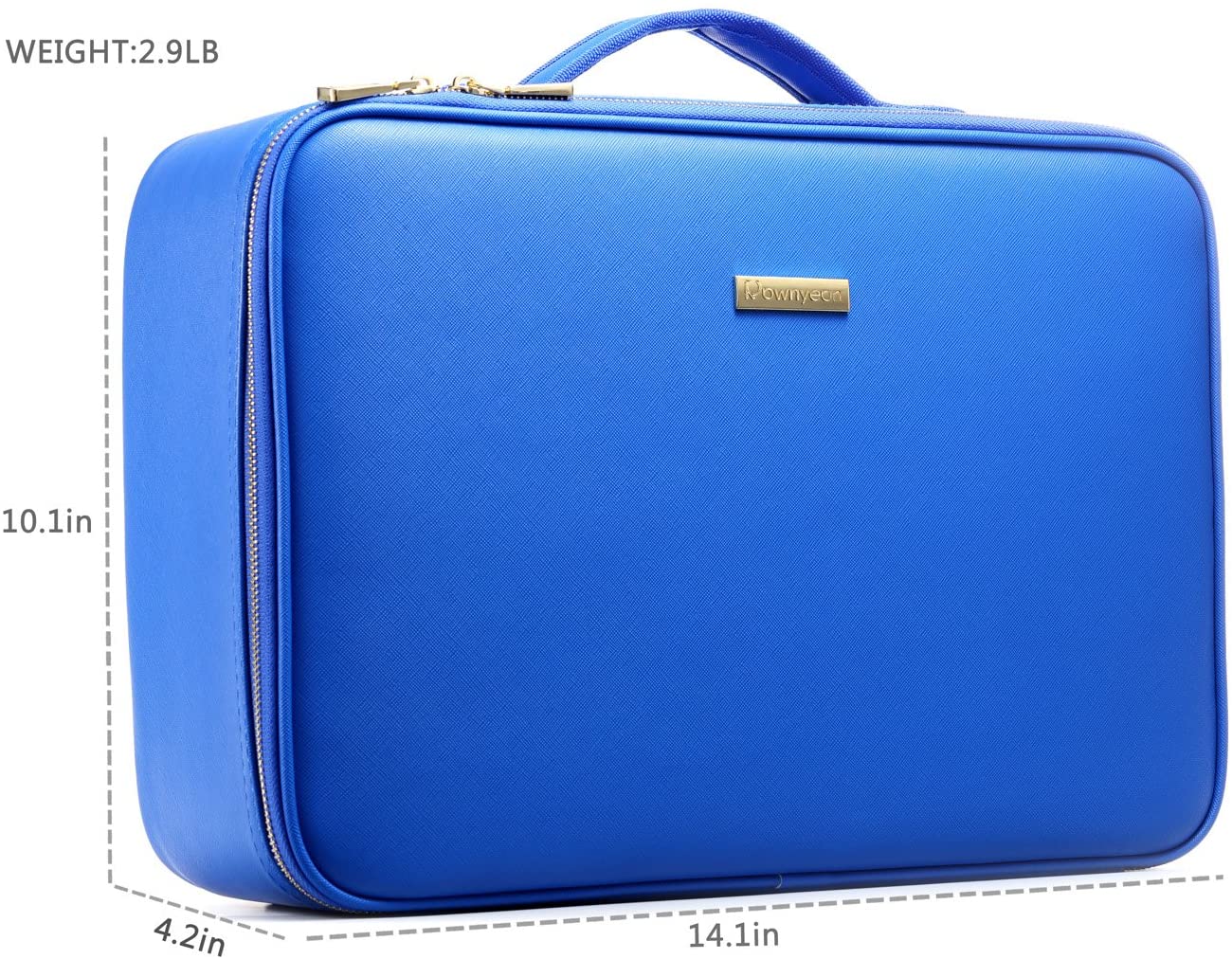 Makeup Bag Organizer Cosmetic Train Case Travel Makeup Case Portable Artist Makeup Travel Bag Waterproof PU Leather EVA Adjustable Dividers Girls Women Medium Blue