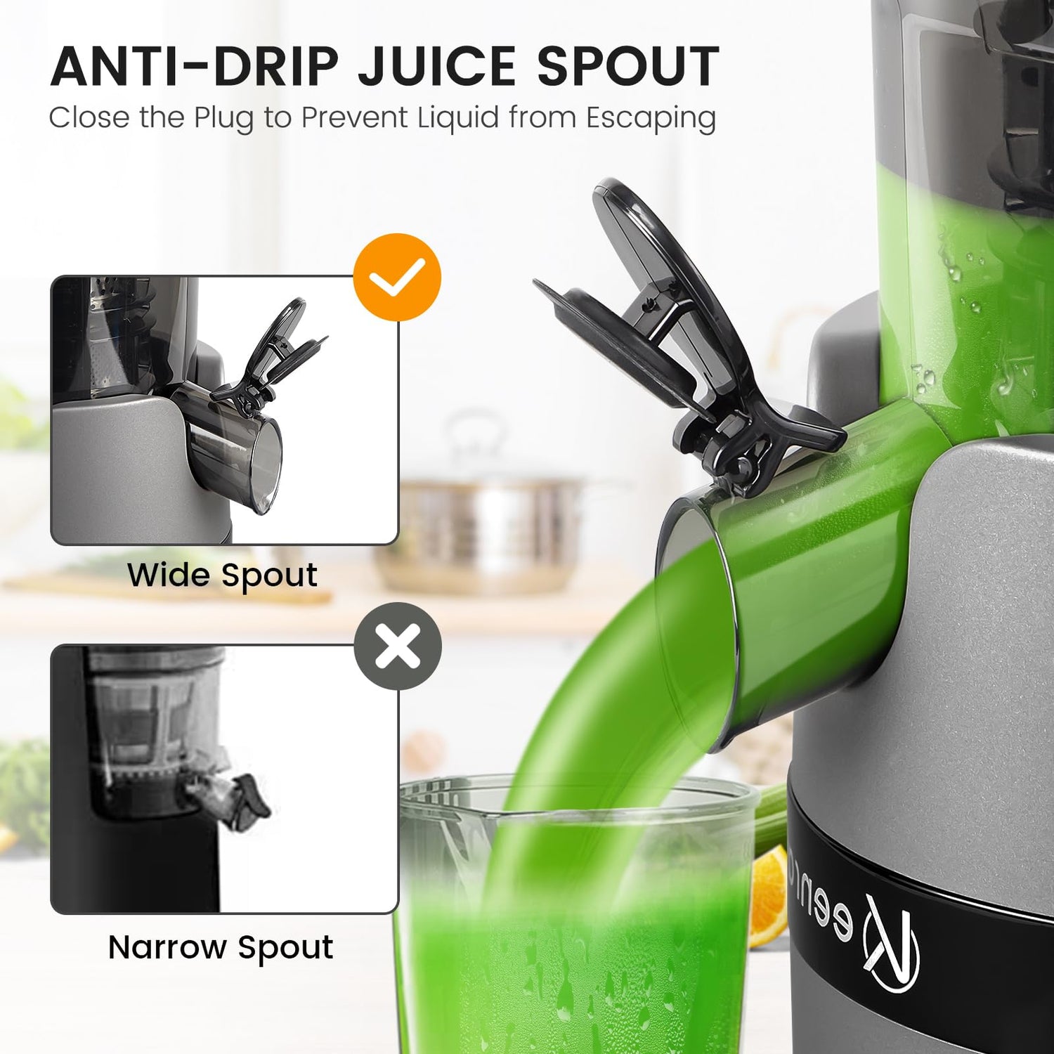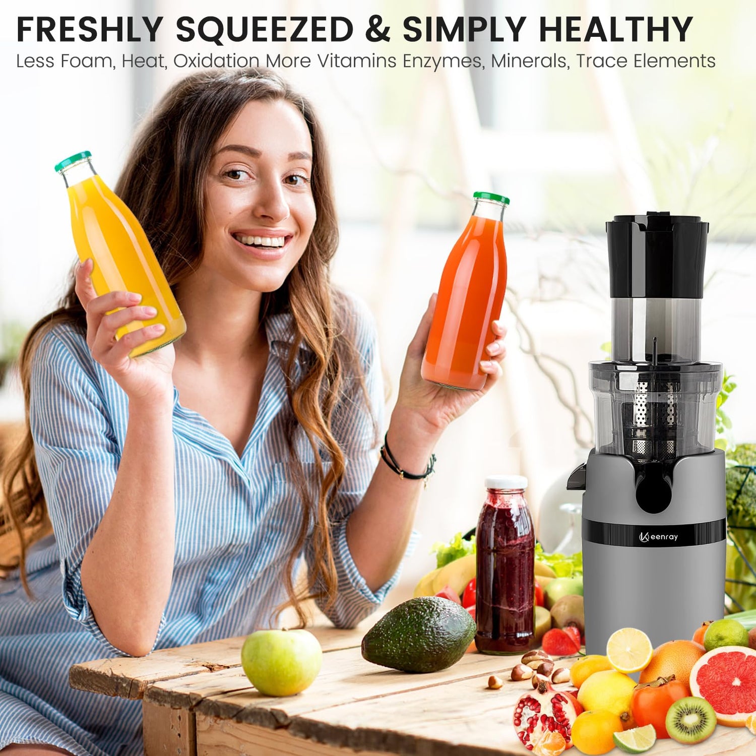Juicer Machine for Whole Fruits and Vegetables, Cold Press Slow Juicer with Wide Mouth 80mm Feeding Chute, Reverse Function Quiet Motor Fresh Healthy Juice Extractor, EL18, Grey - Grey is backordered and will ship as soon as it is back in stock.