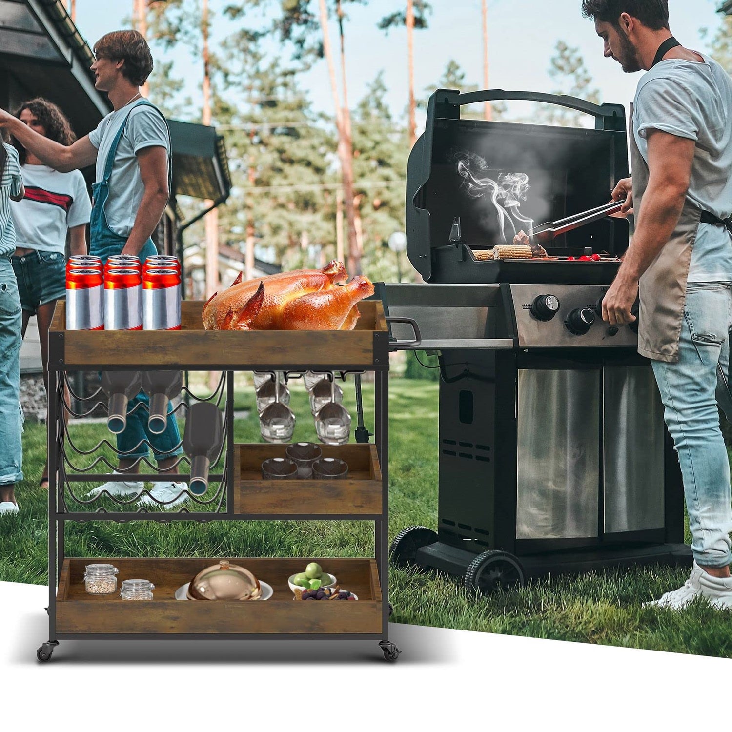 Bar Cart Drinks Strorage Trolley with Wine Racks 3 Tier Kitchen Serving Cart with Wheels Rustic Brown Living Room Industrial Style
