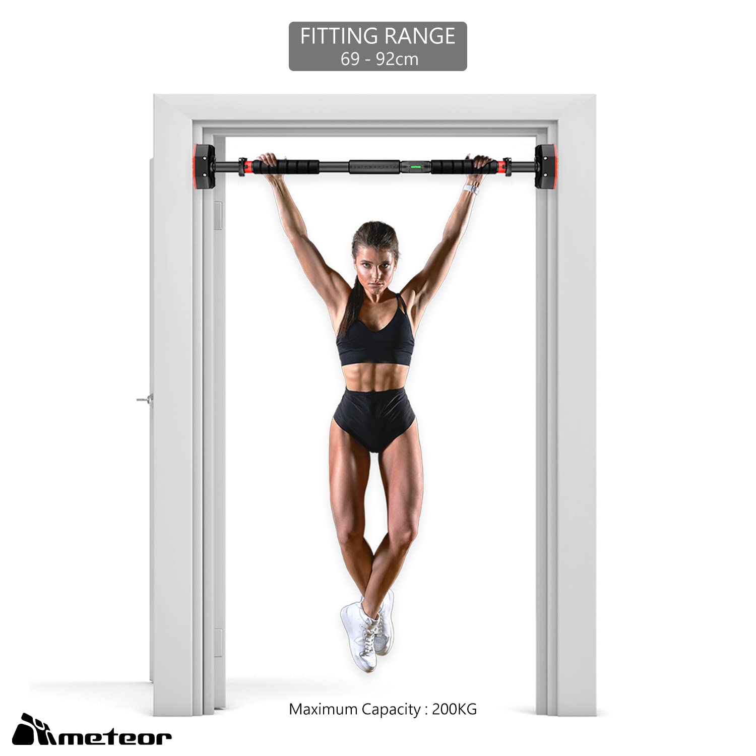 • SAFETY GUIDE - The METEOR Essential Pull-up Bar is for home use only and comes with a maximum capacity of 200kg if properly installed but is not designed to withstand strong horizontal force like commercial pull-up racks. We highly recommend using the bar within the specified capacity with the necessary protections. Do not perform any vigorous sways and spins with the bar.