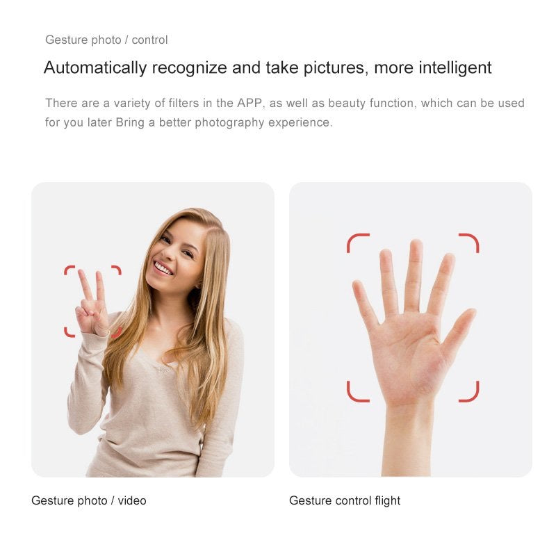 5. Automatic Photo Recognition: The drone is equipped with automatic photo recognition function, which is more intelligent, and there are a variety of filters and beauty functions in the APP, which will bring you a better photography experience.