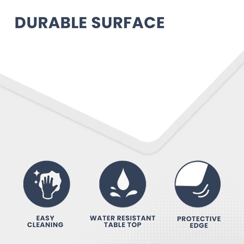 - Sleek and smooth – The table top comes in a white laminated wood pattern(109cm x 60cm x 1.5cm) and has a smooth and scratch-free finish. It is designed to match any office or study and will add a professional touch to your space with its modern, minimalist, and understated design.