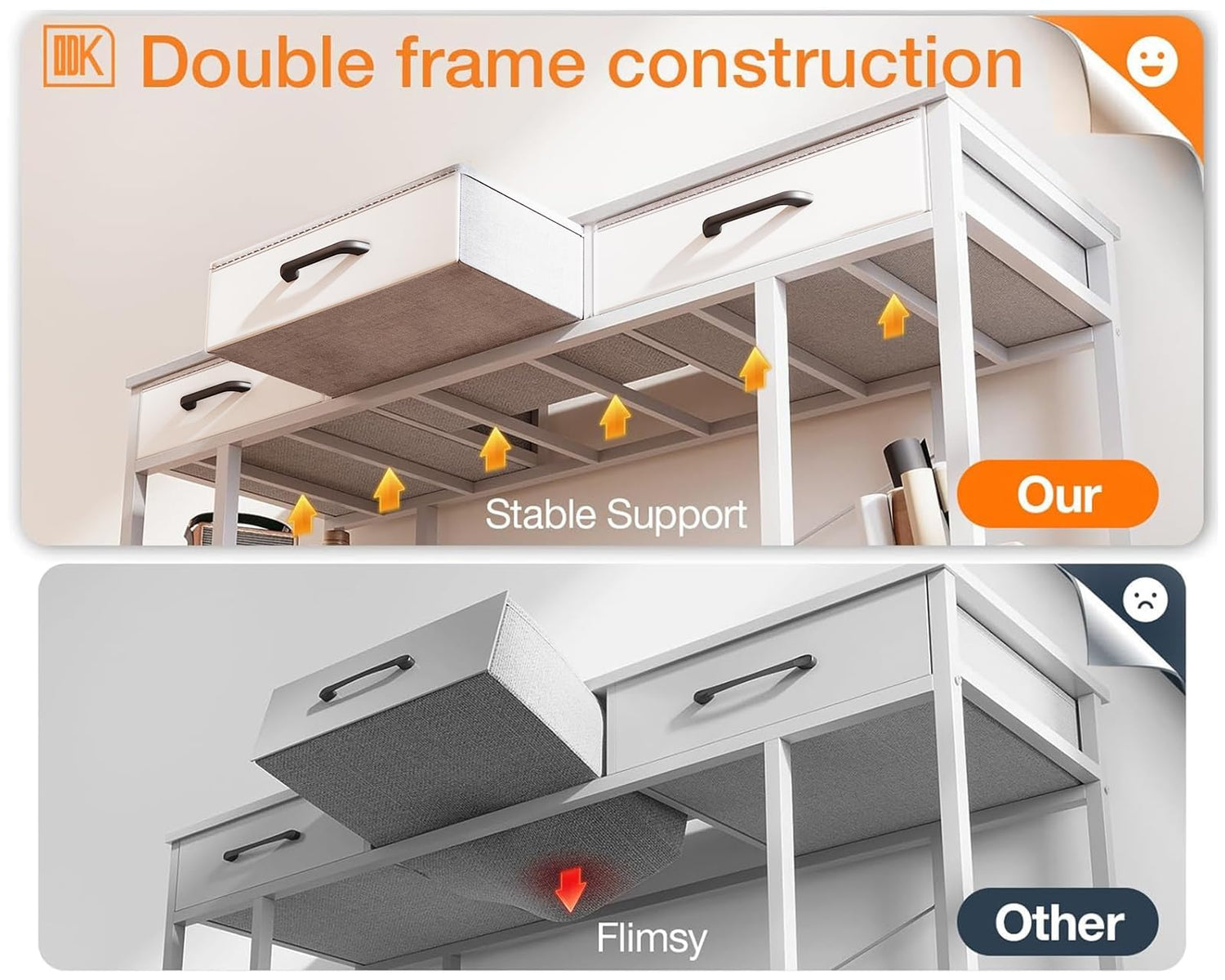 - Large Storage Capacity Desk with Drawers: This desk table is designed with 3 easy to assemble fabric drawers that give a nice amount of storage for everything else you need during your work day or study day. The 3 storage drawers can stash things away. Perfect for placing your documents, office or school supplies, gaming equipment etc. You will always have an organized desktop after owing it.