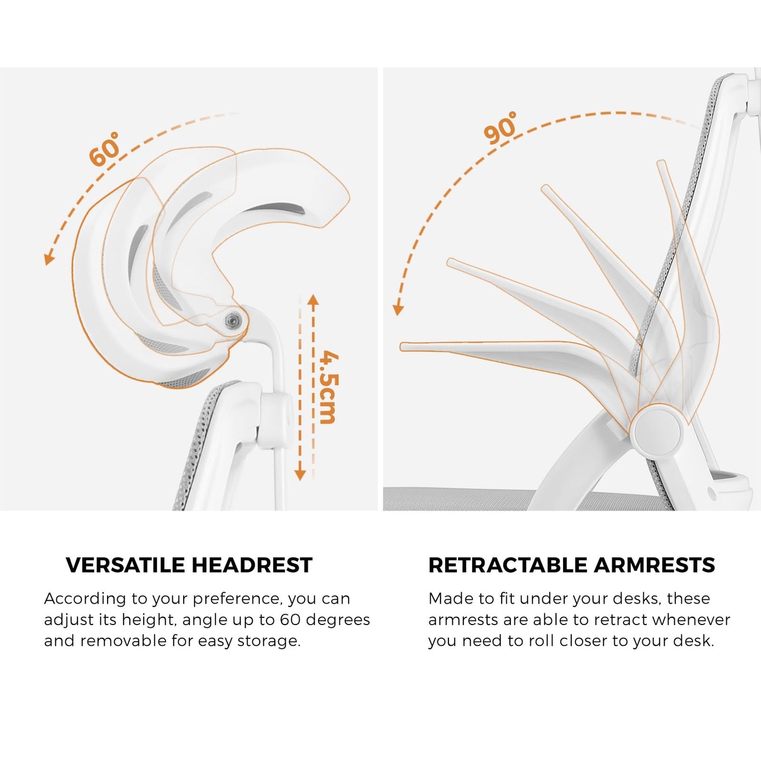 Ergonomic Office Chair, Highly Breathable Home Office Chair with Removable Headrest, Retractable Armrest and Wide Tall Backrest, Computer Desk Chair for Office White