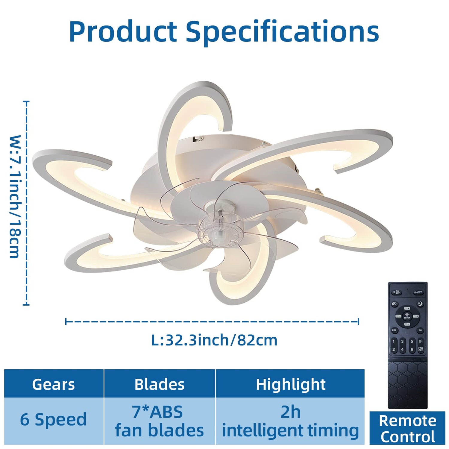 - Modern Design: Modern ceiling fans add a sense of design and fashion to your room. 82cm in diameter is suitable for 8-20 square meters of room, bedroom/living room/dining room/study/office, and 13cm in height can be used even in low rooms and attics.