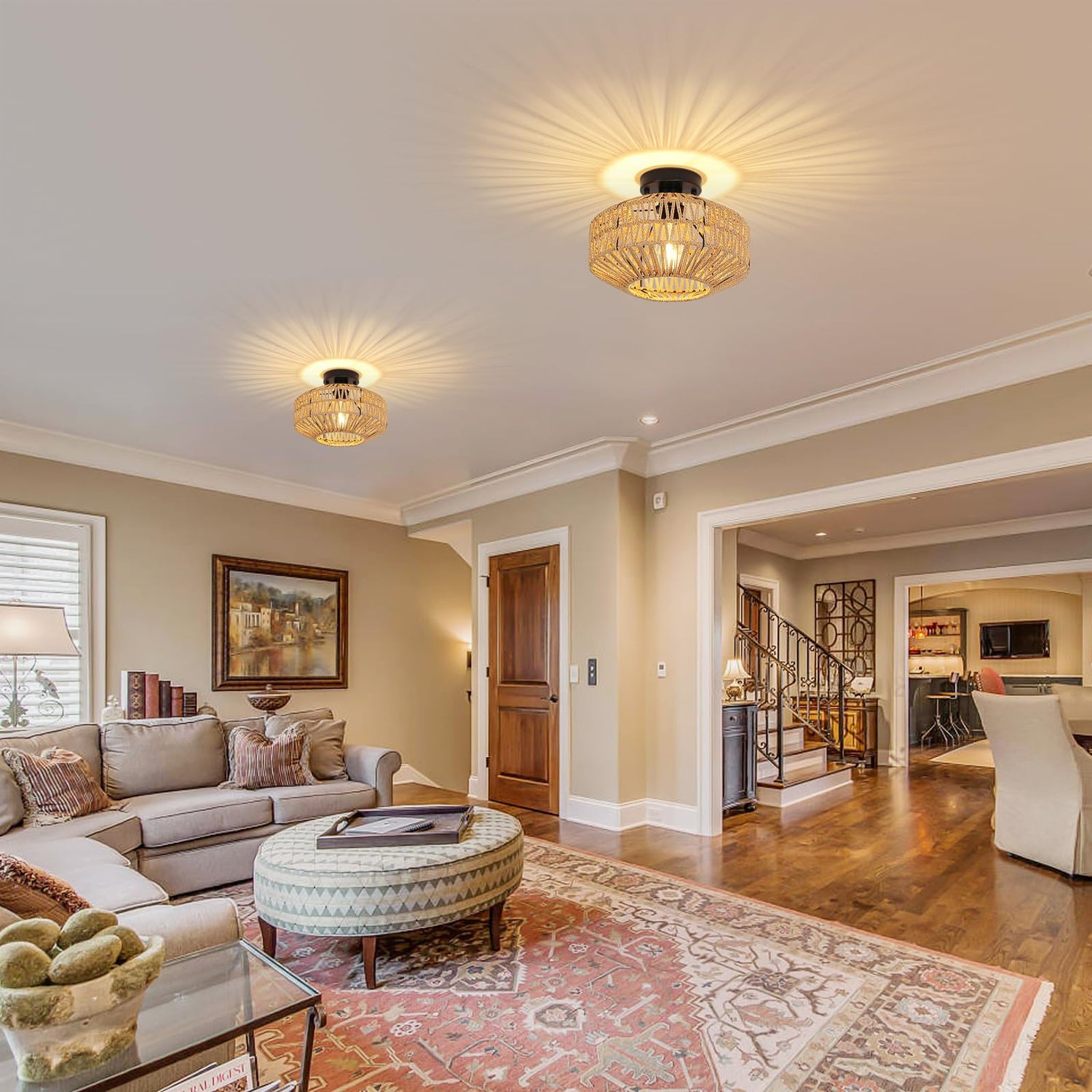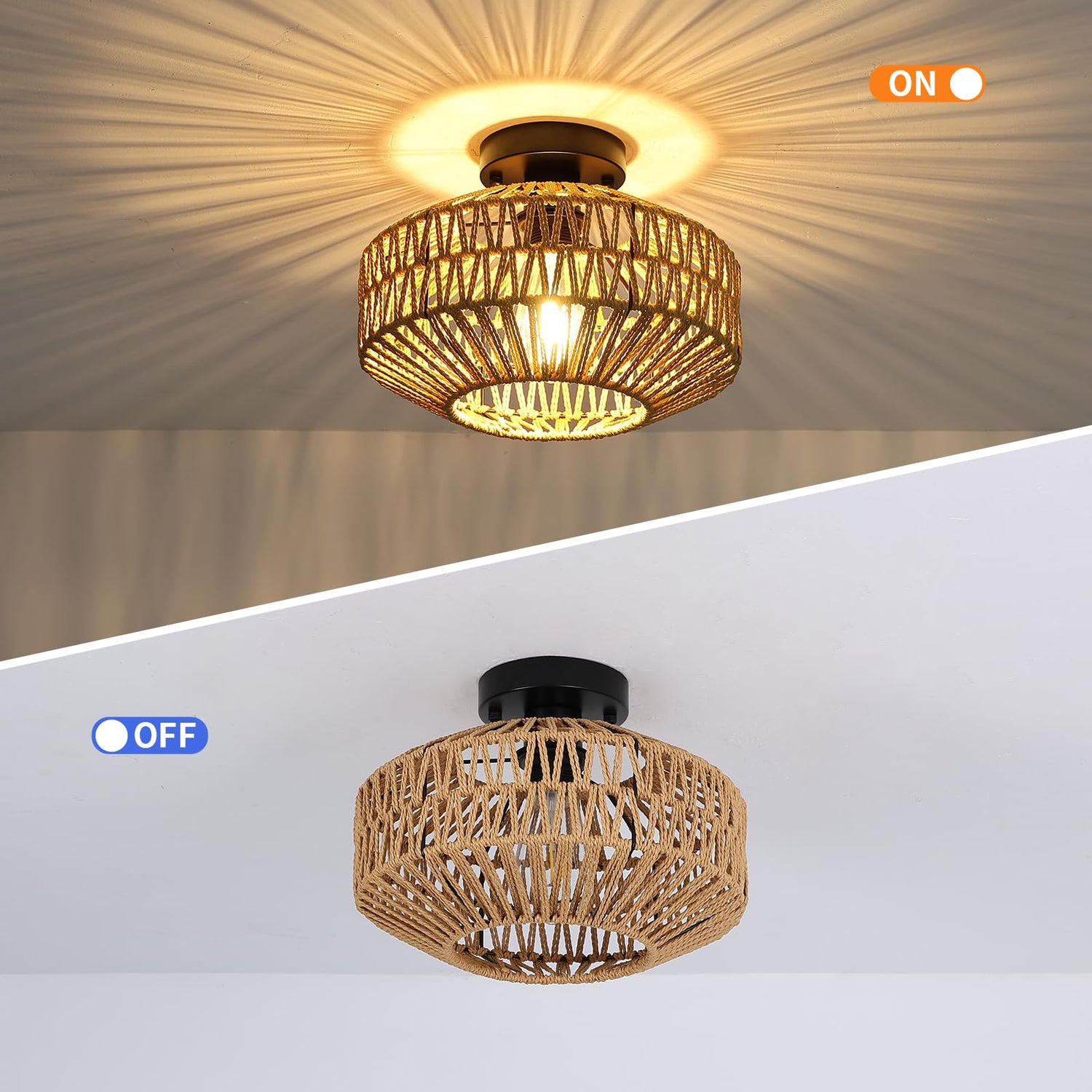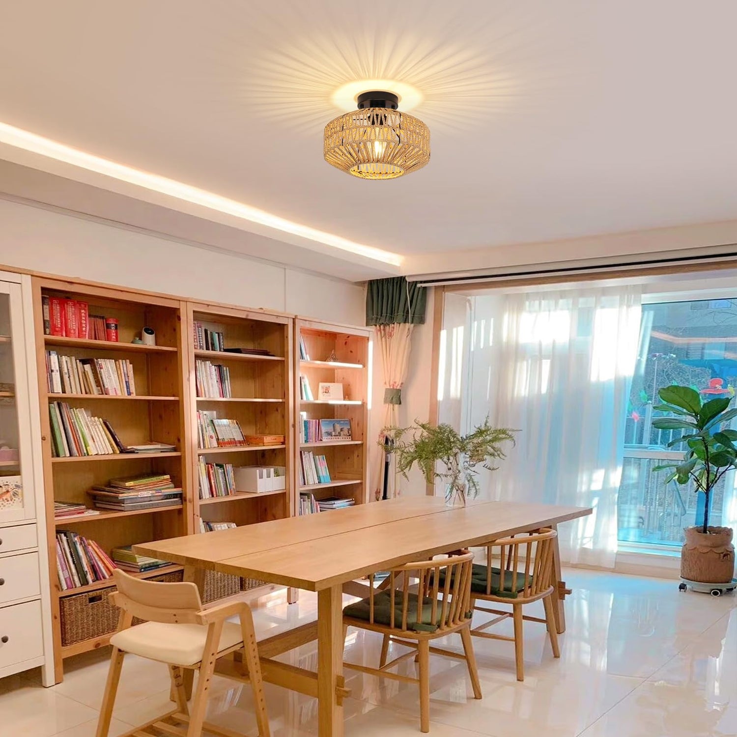 • Unique Design: The flush mount chandelier combines a retro and minimalist style, adding elegance to your space and providing a relaxed ambient light around it. In addition, our woven basket lampshade can enhance the taste and artistic atmosphere of the room.