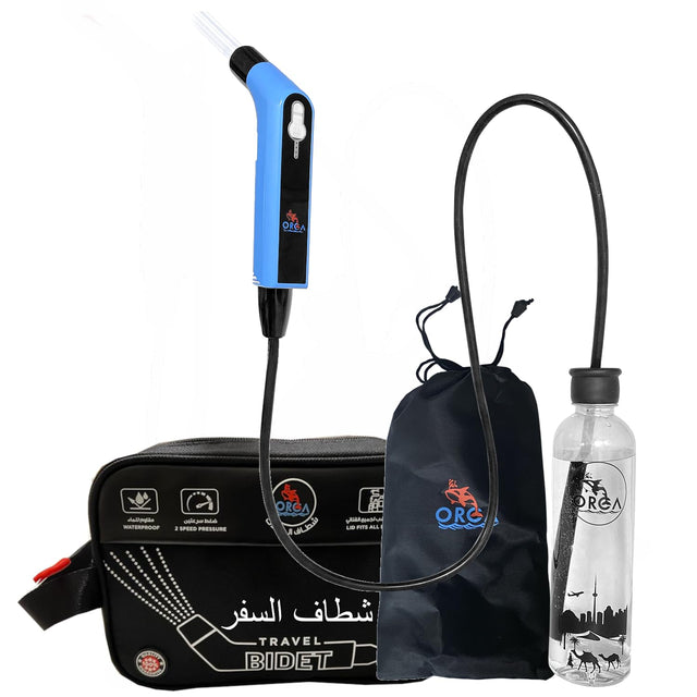 The Orca Portable travel bidet is the easiest way to take the refreshing cleanse of a bidet wash on the go. The Orca bidet attachment is best comfortable to carry and use for men , women or babies. Very easy to premium adjust the Nozzle in any type or shape of bottle with nice buzz. In addition, Orca Bidet comes with a bottle that fit into the packaging bag. For you to use it, just simply fill with cool or warm water, screw on the Nozzle, and use the handheld with high two controls to clean the area. Versatile On-the-Go Hygiene: Discover the Orca portable travel bidet, a multi-purpose hygiene essential for men, women, and babies. Ideal for applications ranging from elderly care to outdoor adventures, it ensures cleanliness and comfort wherever you are. Innovative Silicone Nozzle for Global Compatibility: Orca's patent pending silicone nozzle offers a secure fit on any plastic bottle lota worldwide, preventing leaks and providing apowerful universal solution for your portable bidet needs. Complete Kit with Mesh Bag: Your Orca bidet comes with a 100 ml water bottle, perfectly stored in a high-quality with electric charger, breathable mesh bag. Stay prepared for your daily routine or spontaneous travels. Tailor Your Experience: Orca goes beyond basic hygiene with three experience modes and two pressure speeds. Customize your cleansing experience to your preference, from gentle to invigorating, ensuring a personalized touch. Adaptable to Your Comfort: Orca's versatility extends to temperature preferences. Fill it with hot or cold water for a refreshing or soothing cleanse, delivering a personalized and comfortable experience. Elevate your personal hygiene with the Orca portable travel bidet, a versatile solution designed for the modern traveler. Enjoy global compatibility, customizable options, and adaptable temperature settings for a cleaner, more comfortable journey.