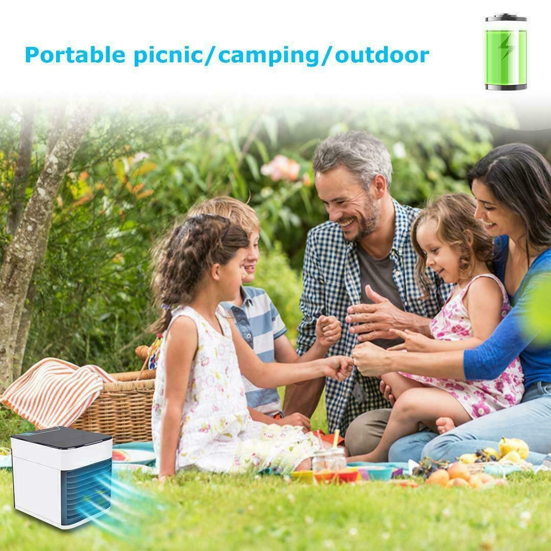 • 3 IN 1 Powerful Year-round Personal Space Cooler: Personal air conditioner cooler, fan, air humidifier, 3 in one multifunction design. Add water into the tank, it can filter hot air, dust, and bacteria through it is the evaporative filter blows out cooling moist air, keeps your skin moisture and purify for better air. Featuring 3 speeds, 7 led mood light, it is the perfect year-round mini air cooler for any office.