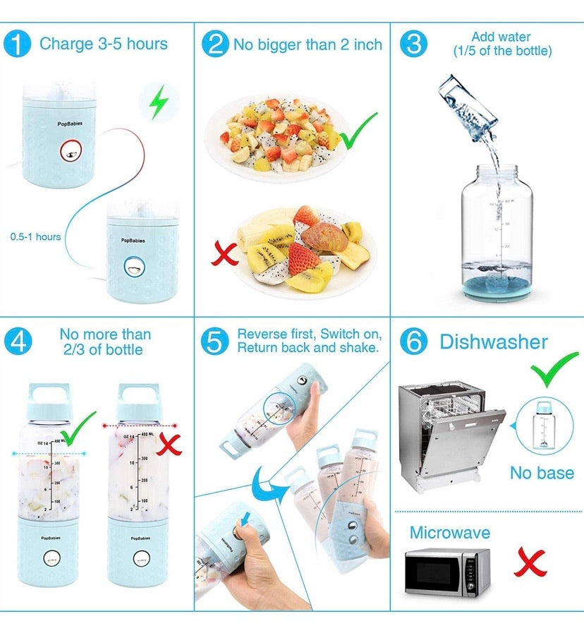- Rechargeable Personal Blender: CAN blend while charging just like plug-in blender BUT much more convenient and versatile than it.