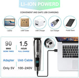 • LED Display & USB Fast Charging: LED Display indicates battery power and reminds you to charge. Built-in rechargeable Lithium-ion battery delivers up to 90 minutes of run time per charge by only about 1.5-hour of charging. High performance can be achieved anywhere. You can manoeuvre the cordless hair clippers easily and use them anywhere to ensure the enjoyment of your travelling, it’s small and portable.