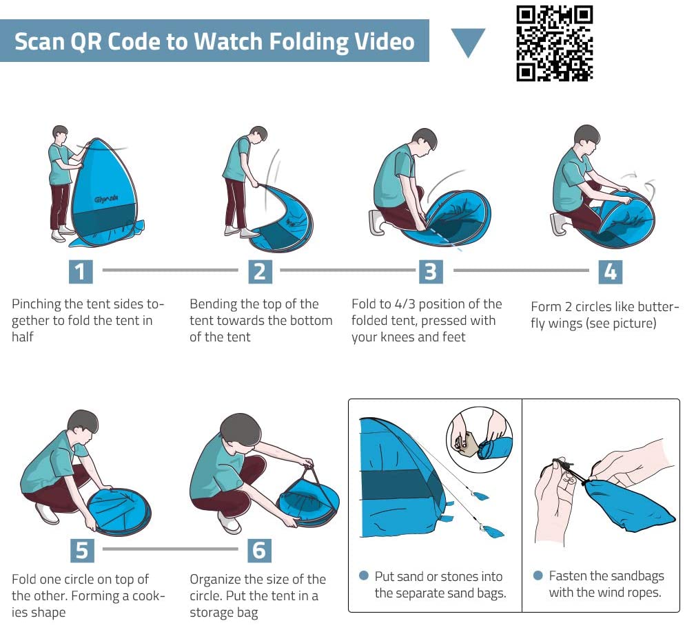 Innovative Pop-up Design, Very suitable for Beach & Fishing & Camping & Hiking& Backyard