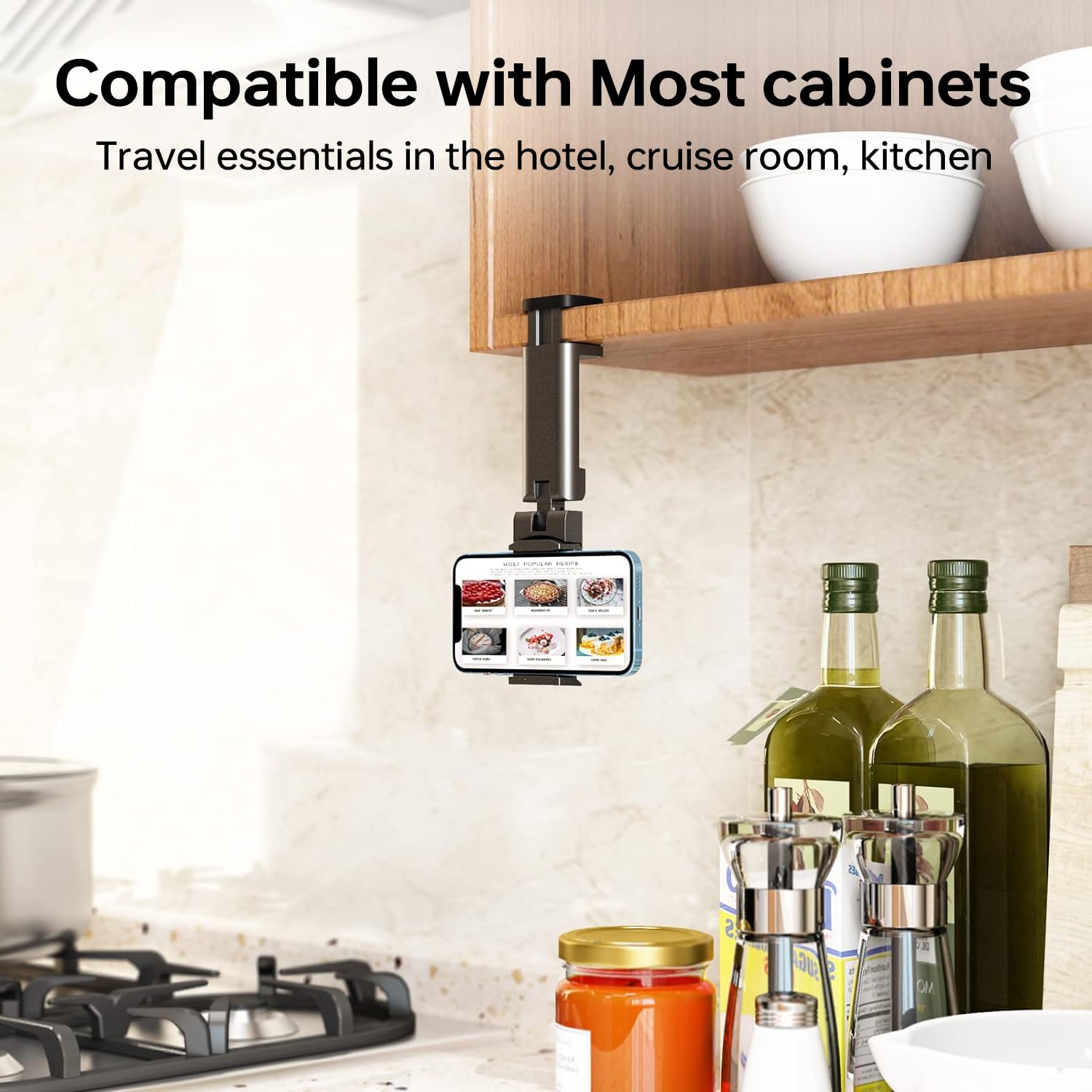 • Mount It Everywhere: With a foldable feature, the cruise travel phone holder is compact and can be carried around. You can mount your phone to a table tray, luggage handle, desktop, bed, kitchen cabinet, shelf, chair, etc.