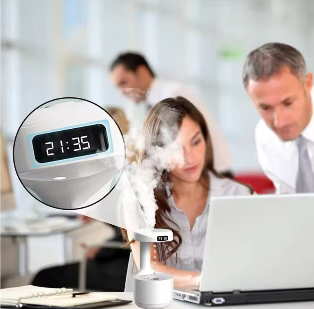 Portable Ultrasonic Anti Gravity Water Drop Humidifier Creative Water Drop Backflow LED Time Display Household Humidifier