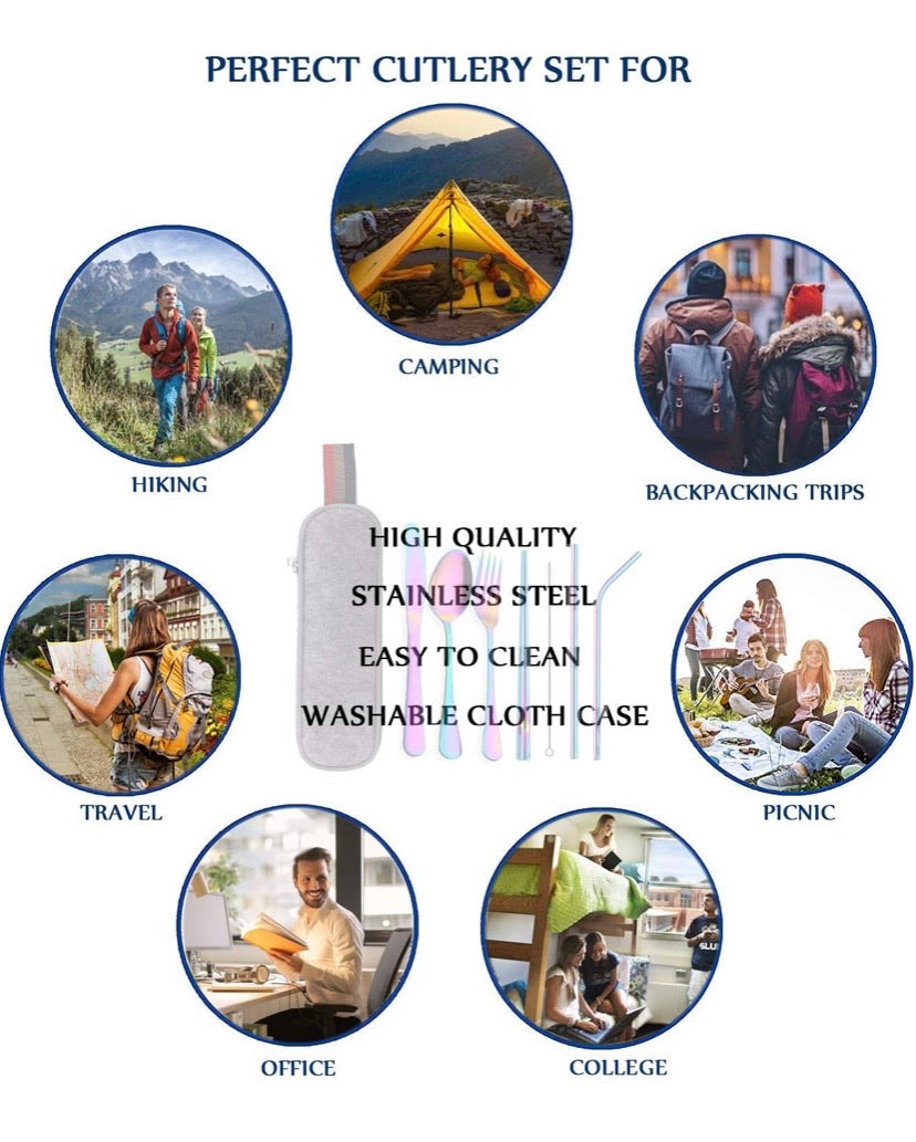 - Versatile āstainless steel Utensil Set for Camping, Travel, Office, College, Car, Esky, Caravan, Scouts, Backpacking trip, Picnic, Hiking and more in or outdoor activities.