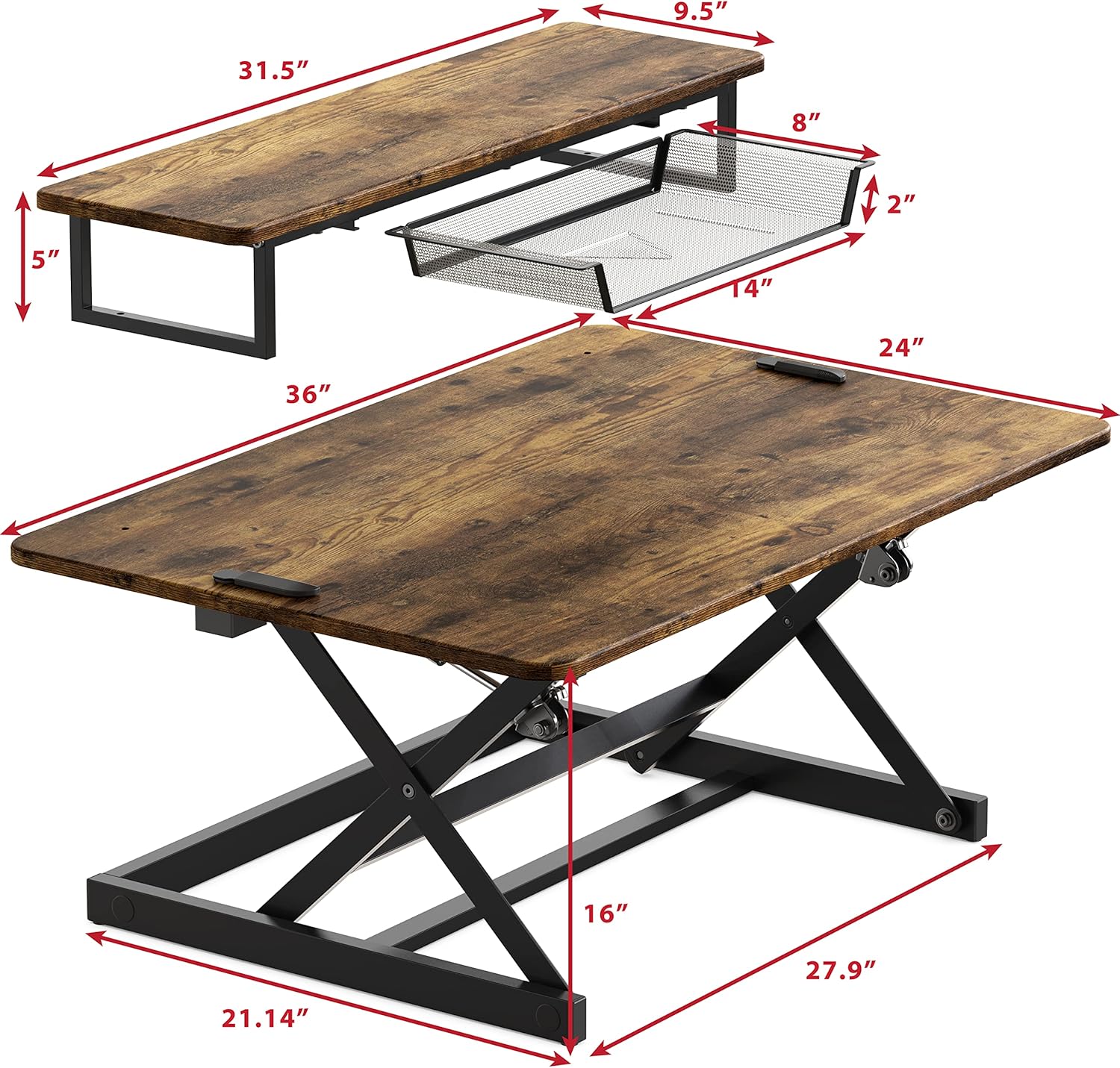36-Inch Height Adjustable Standing Desk Converter Sit to Stand Riser Workstation