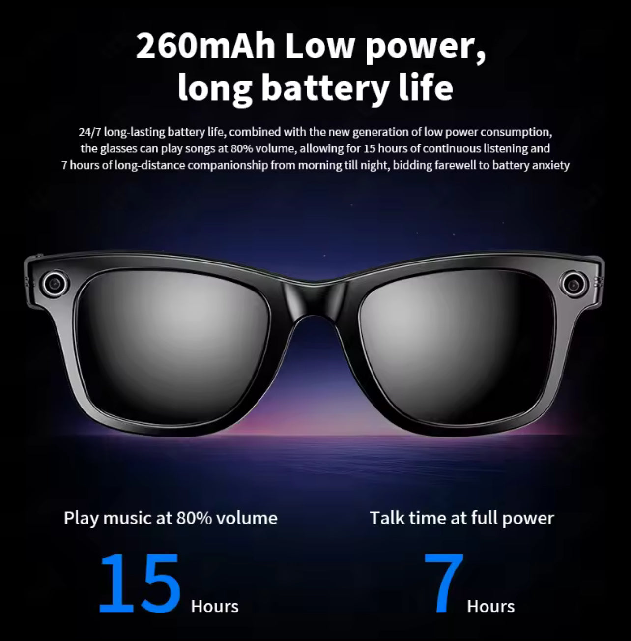 Smart Glasses Recording Videos AI Photo Recognition Answer Translation 260mAh Large Battery IP65 Waterproof Bluetooth Glasses