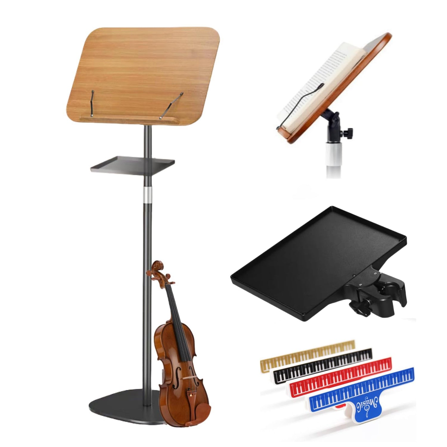 Ssumght 2 in 1 Dual-use Sheet Music Stand & Desktop Book Stand, Large Wooden Book Holder, Height Adjustable from 80-130cm,with Page Paper Clip for Cookbooks, Sheet Music, etc.