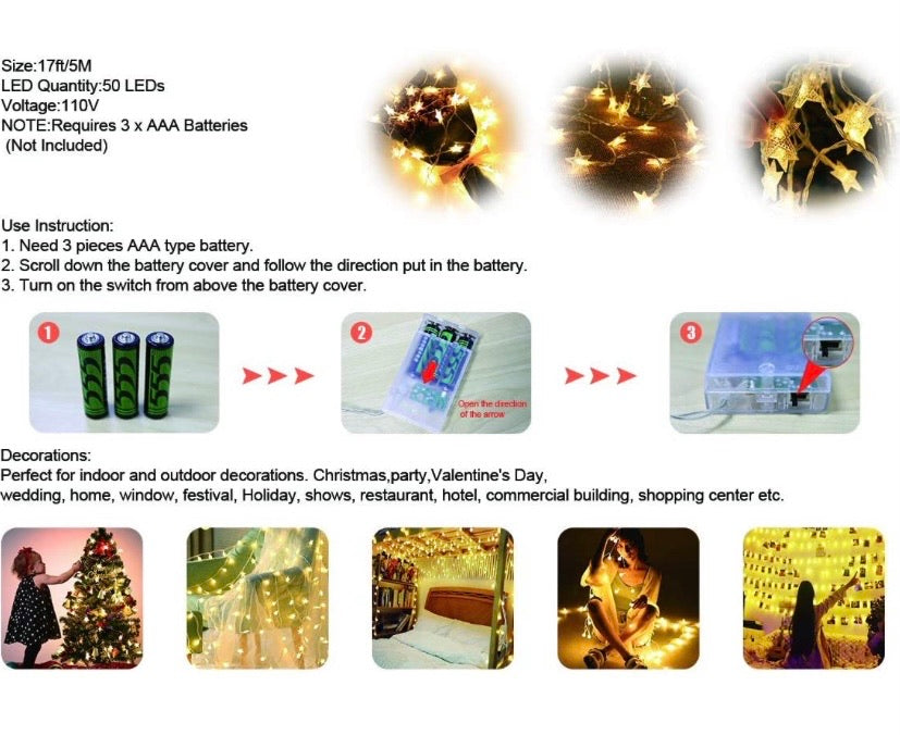 - Energy Saving- Updated little Twinkle Star Fairy Lights , saving more energy than traditional lights and prolong the service time. powered by 3*AA batteries(not included). It can be used in anywhere (indoor and outdoor decoration).