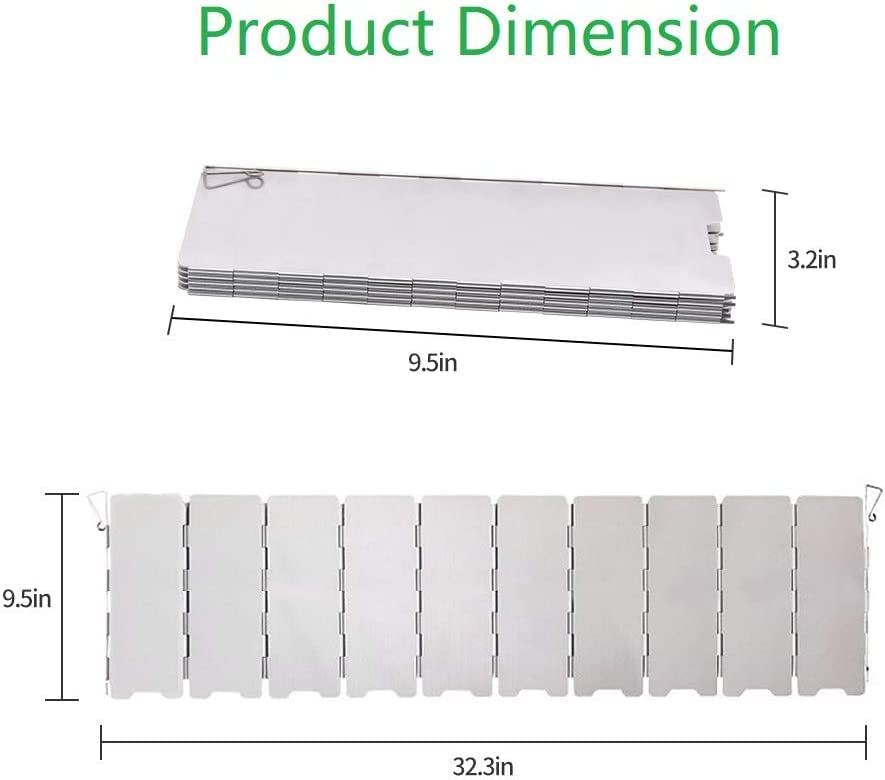 - Lightweight and Portable: The packaging size of the stove windshield with the drawstring bag is 10.2"x 3.9"x 0.8" and the weight is only 10oz, there is no pressure to carry it around