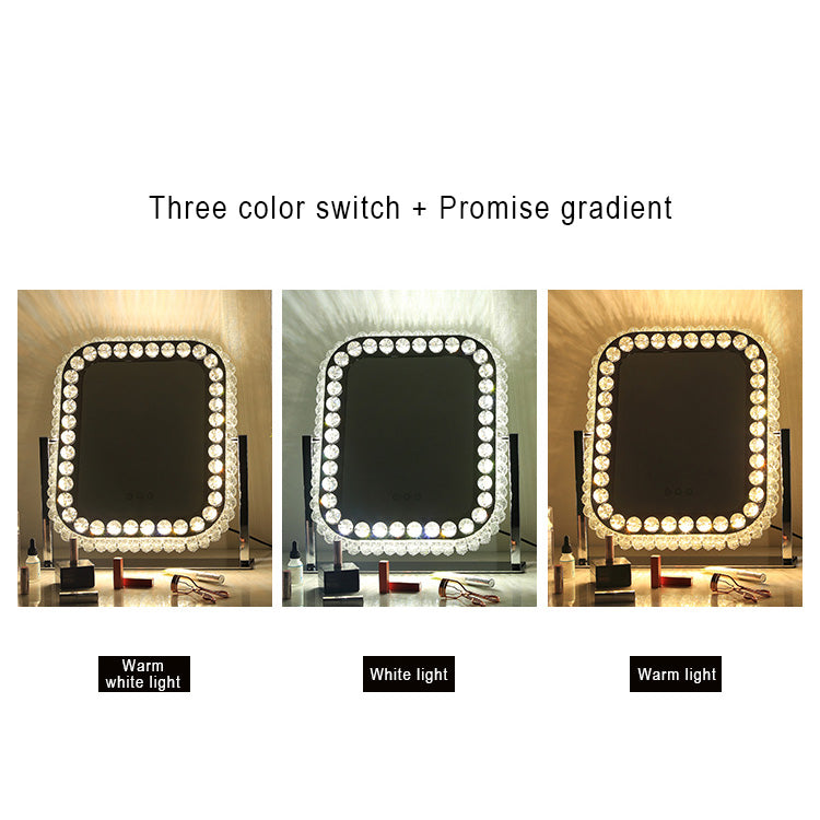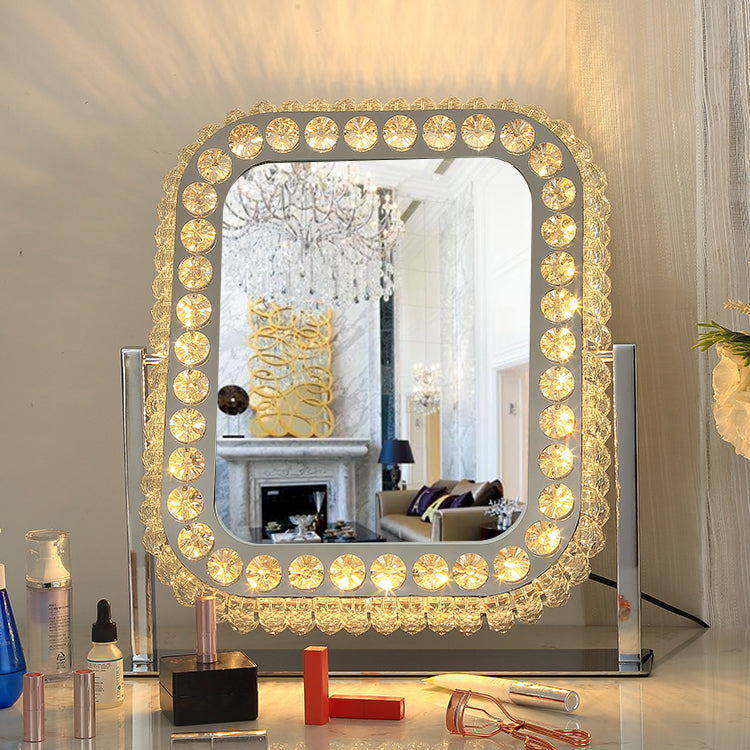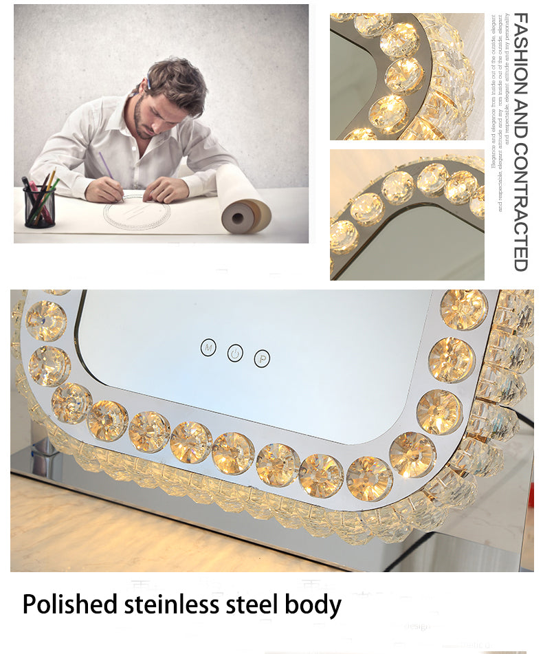 Tabletop Stainless Steel LED Princess Crystal Vanity Mirror with 3 color Lights