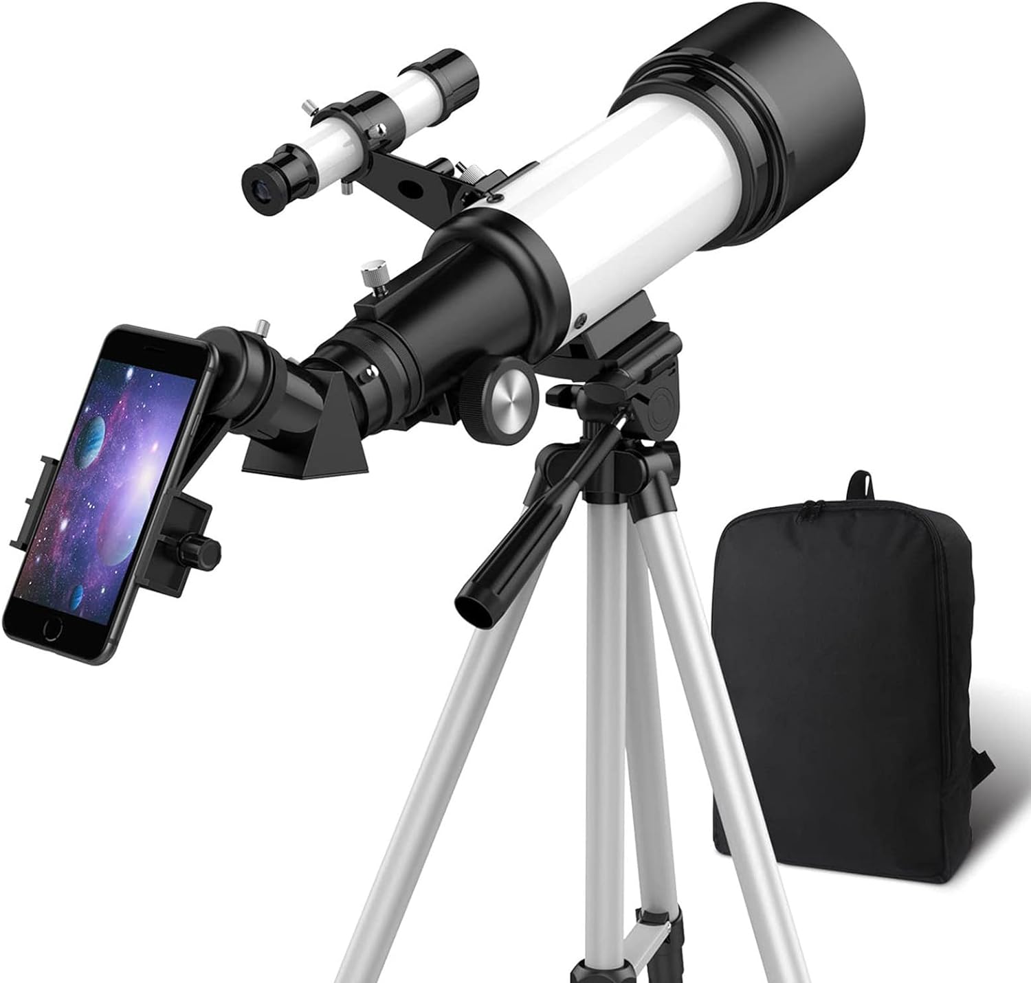 Telescope, Telescopes for Adults, Telescope for Kids Beginners 70mm Aperture 400mm AZ Mount, Fully Multi-Coated Optics, Astronomy Refractor with Tripod, Phone Adapter, Backpack