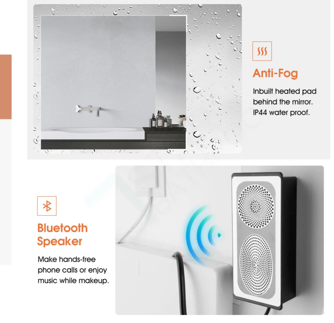 Touch LED Light Bluetooth Bathroom Makeup Wall Mirror Defog 600x800 600x1000mm