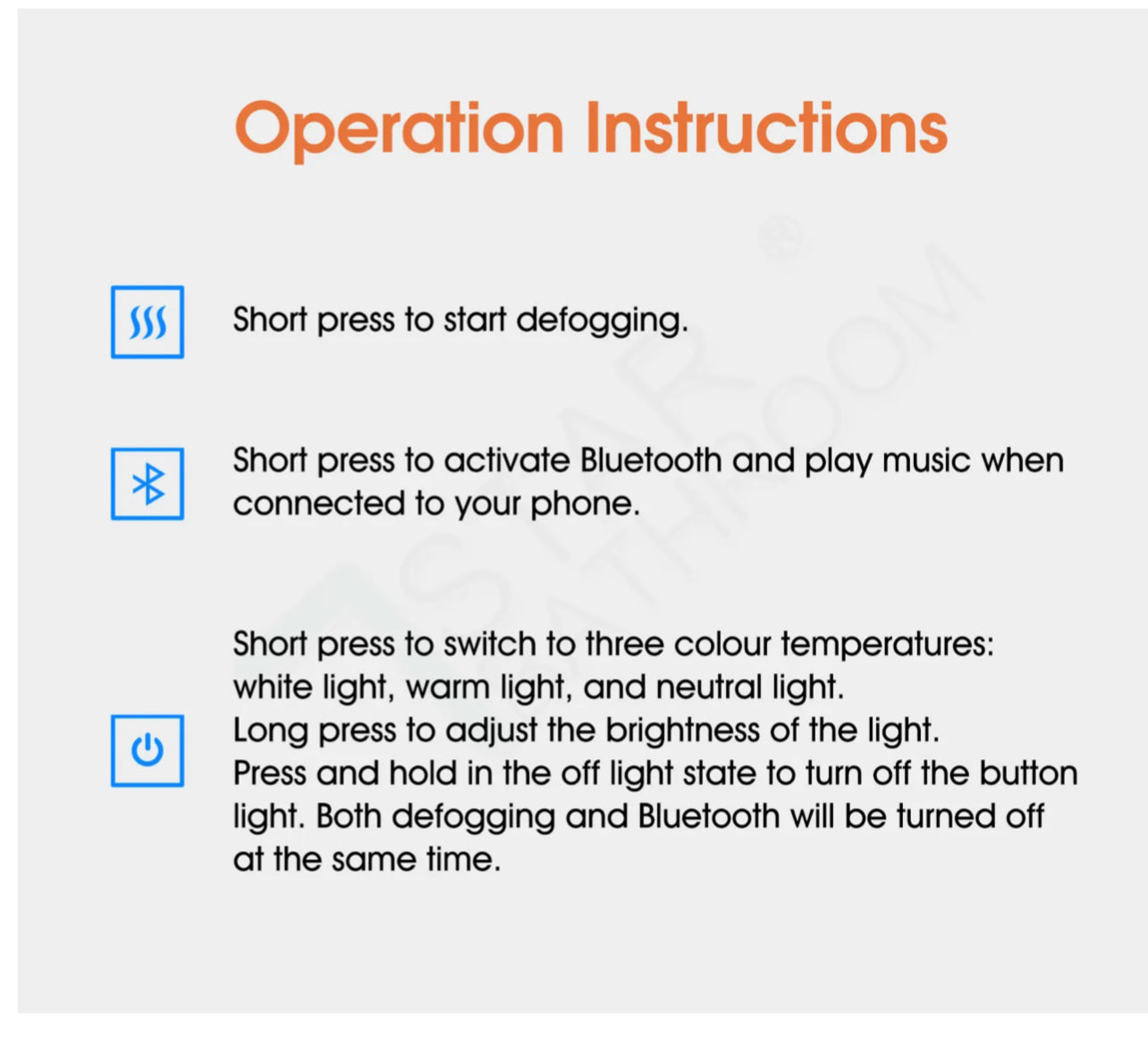 • Smart brightness memory function: Remember the last setting of brightness(colour of light does not change), no need to adjust everytime you turn on the mirror.