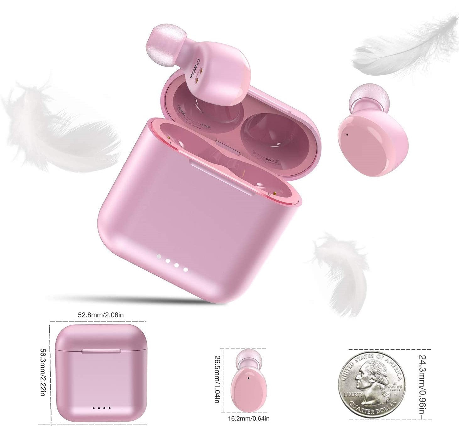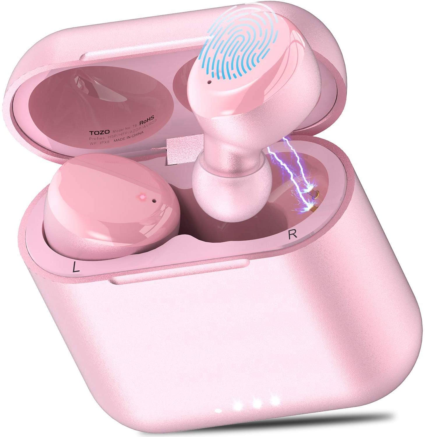 TOZO T6 True Wireless Earbuds Bluetooth Headphones Touch Control with Wireless Charging Case IPX8 Waterproof TWS Stereo Earphones in Ear Built in Mic Headset Premium Deep Bass for Sport Rose Gold