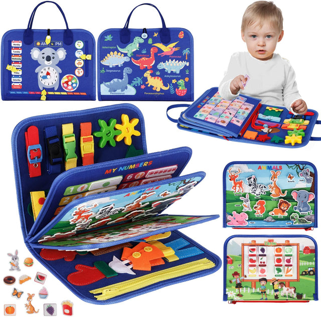 Busy Board, Montessori Toys for Toddlers, Toddler Sensory Toys Preschool Educational Busy Book Travel Toys for Toddlers 3 4 5 Year Old Girls Boys Plane Car Activities Baby Quiet Book (Blue)