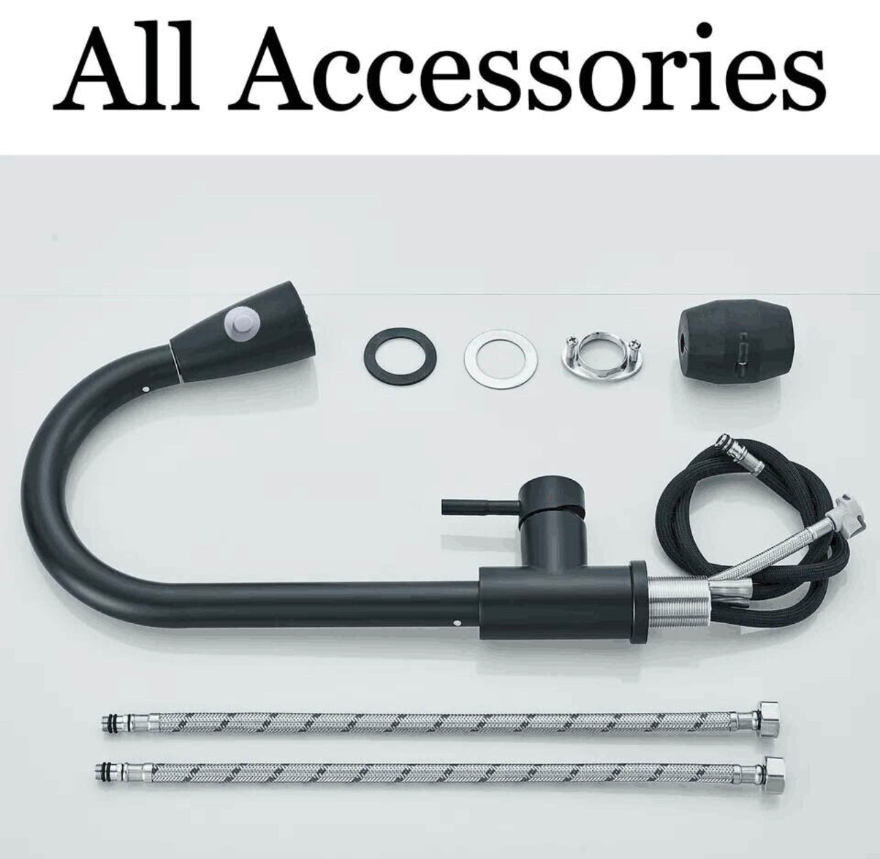 WELS Kitchen Mixer Tap Black 360° Pull Out 2-Mode Spray Laundry Sink Faucet