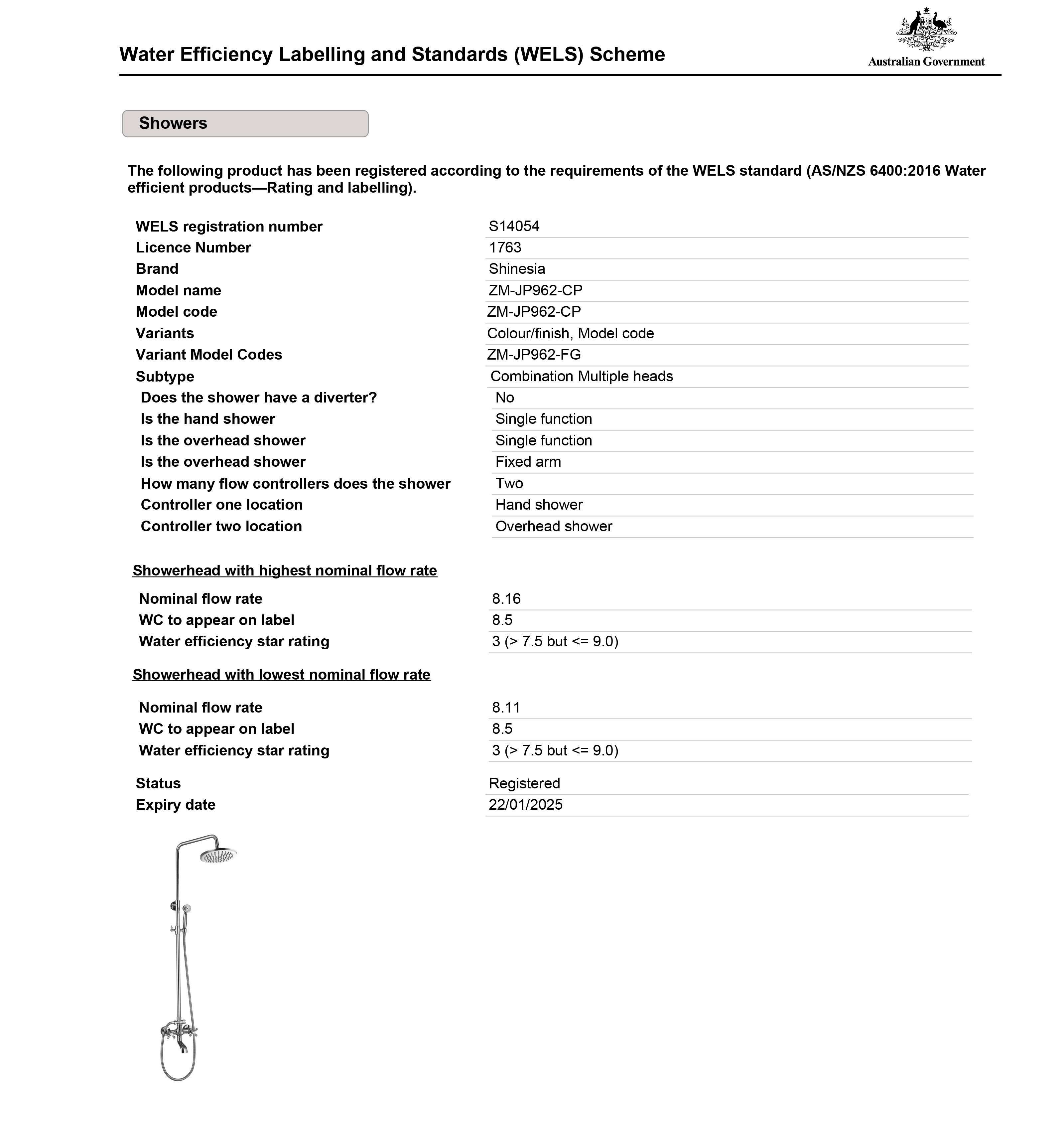 • Shower Head Material: Brass