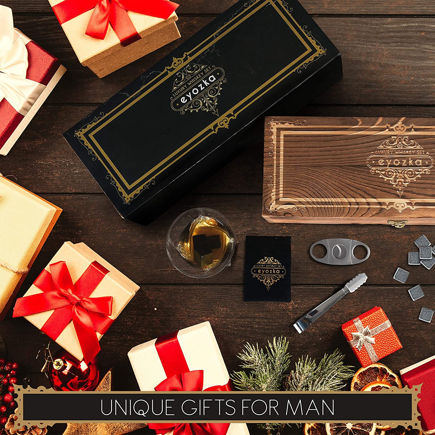 Whiskey Glass Set Gift Box - Cigar Cutter and Whiskey Stones Included - Chilling Stones Gift Set - Scotch Bourbon Glasses Bar Accessories - Reusable Ice Cubes - Unique Gifts for Men