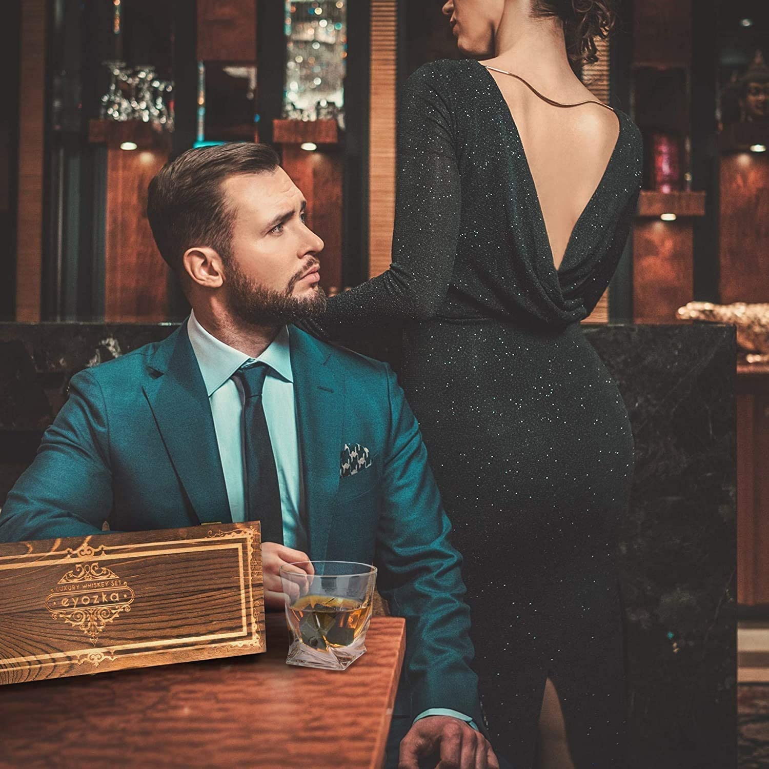 • BE PARTICULAR IN CHOOSING A GIFT - Who doesn't want to give a memorable gift? Our premium quality whiskey glass set of 2 would be more than enough to meet this criteria. This would be great either with your whiskey decanter or with your bar accessories. Now you see better why we have so much trust in our whiskey glass set as the perfect gift.