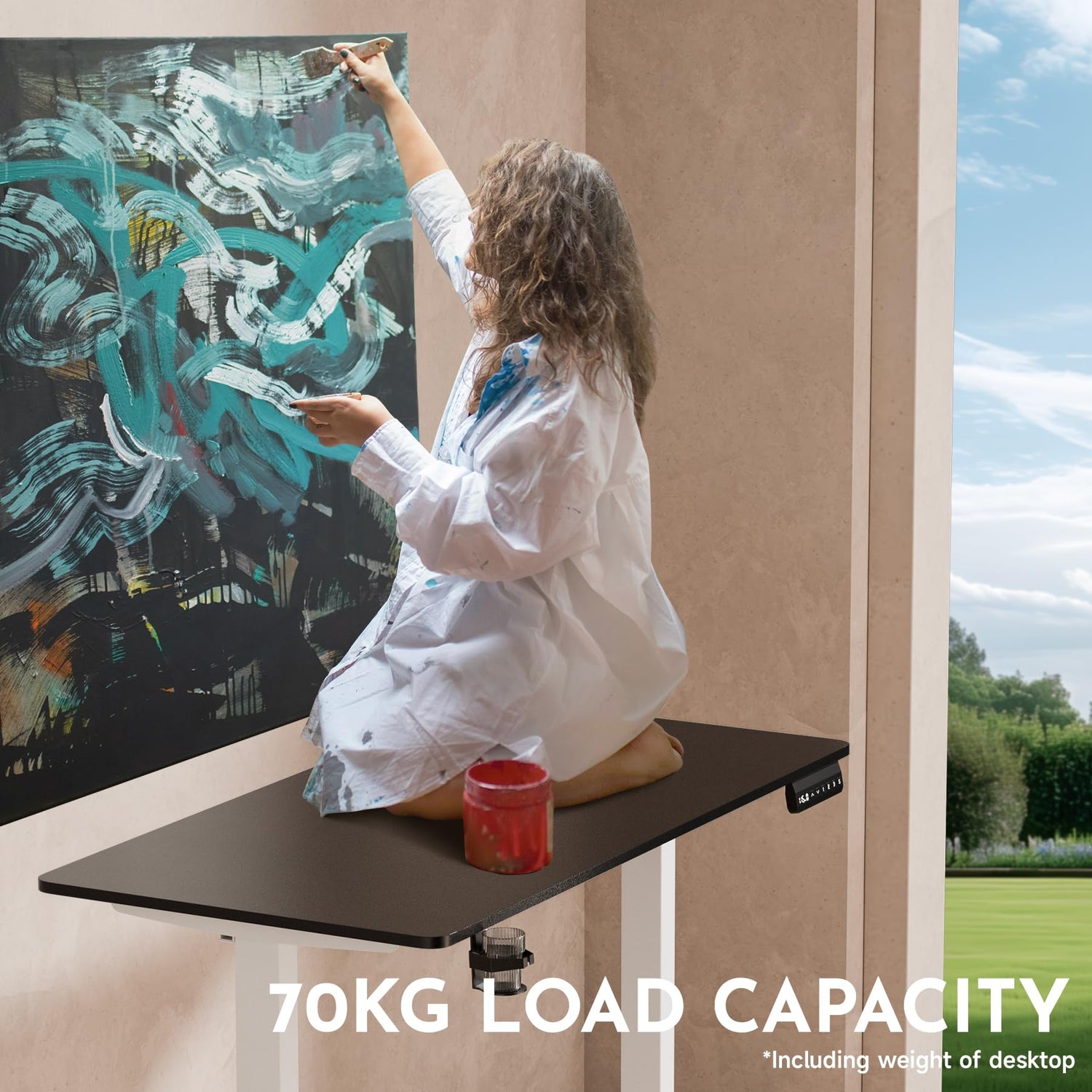 Electric Height Adjustable Standing Desk Whole-Piece Desktop Sit Stand Up Computer Desk Workstation with Memory Controller for Home, Office, Gaming 120×60cm (White Frame + Black Top)